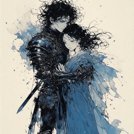 Scottish folk ballad in a duet form, Male lead vocal, lamenting and rough, paired with female voice answering as dog, steed, and hawk in a lighter timbre, Minimal acoustic instrumentation: fingerpicked guitar, droning banjo, low bodhrán percussion, and faint harmonium, Slow tempo, 3/4 time, dirge-like but melodic, Final chorus should swell into both voices in harmony, fading into a mournful cadence