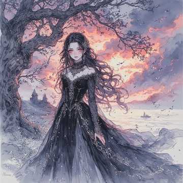 Psytrance, dark dance fusion with bardic storytelling, tempo about 134 BPM, in D minor, Female lead vocal, ethereal and chant-like, drawn from a folk ballad but processed with reverb and echo, creating a trance-like atmosphere, Layered vocal harmonies float above pulsing 4/4 kick and deep rolling bassline, Shimmering synth arpeggios echo the banjo and slide guitar patterns, morphing into bright stabs and sweeping pads, Percussion with crisp hi-hats, shakers, and filtered snares drives the rhythm, Breakdowns drop into atmospheric drones, whispers, and distant choirs, building back with rising tension, Mood: mystical, hypnotic, merging ancient faerie myth and modern trance ritual