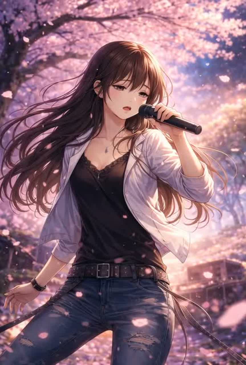 Beautiful and bittersweet Japanese-style song inspired by winter cherry blossoms blooming against the cold, Medium-slow tempo with gentle forward motion, not a ballad drag, Emotional Japanese rock foundation with clean and lightly distorted electric guitars, warm bass, and restrained but expressive drums, Traditional Japanese instruments are essential: koto arpeggios adding delicate shimmer, shakuhachi breathy tones expressing loneliness, and subtle taiko for deep, slow pulses — all blended organically, never overpowering, Female vocal, soft yet resolute, clear and intimate, expressing quiet love, longing, and graceful acceptance, Mood is elegant, fragile, and sincere — smiling while knowing the pain of parting, Harmony feels calm and refined, with emotional swells in the chorus like petals falling in slow motion, No aggression, no cyber elements, purely organic and poetic, Strong sense of Japanese aesthetics, wabi-sabi, fleeting beauty, and emotional warmth lingering after the final n