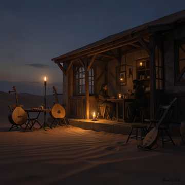 Instrumental only, no vocals, Dark cinematic fusion: medieval Celtic tavern music bleeding into a North African desert bazaar at dusk, Lead instruments: intricate gittern and oud melodies intertwining like whispered secrets, mournful uilleann pipes crying over the sand, driving bodhrán rhythms that feel both ancient Irish and hypnotic North African, Minor keys, modal scales, subtle drone undertones, Atmosphere: shadowy deals in candlelit corners, questions best left unanswered, danger wrapped in exotic beauty, Slow to mid-tempo, building tension then releasing into swirling, almost hypnotic refrains, Think early Dead Can Dance meets medieval folk and desert blues, Rich reverb, dusty textures, faint distant market sounds, Masterful, mysterious, slightly menacing, --v5, 5