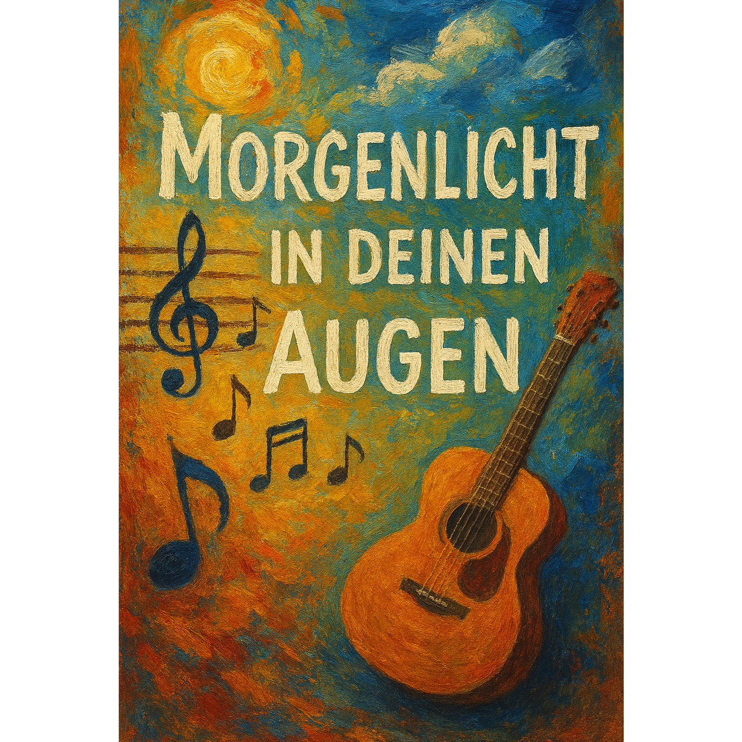 Begin with warm Akustikgitarre, gentle picking establishing a dreamy rhythm at 102 BPM, Sanfte Drums and dezente Percussion create a soft groove, Streicher subtly swell in verse, growing in the chorus with emotion, Glockenspiel adds sparkling melodic accents, Background-Chor supports the chorus, adding rich, loving harmonies throughout