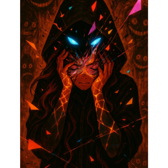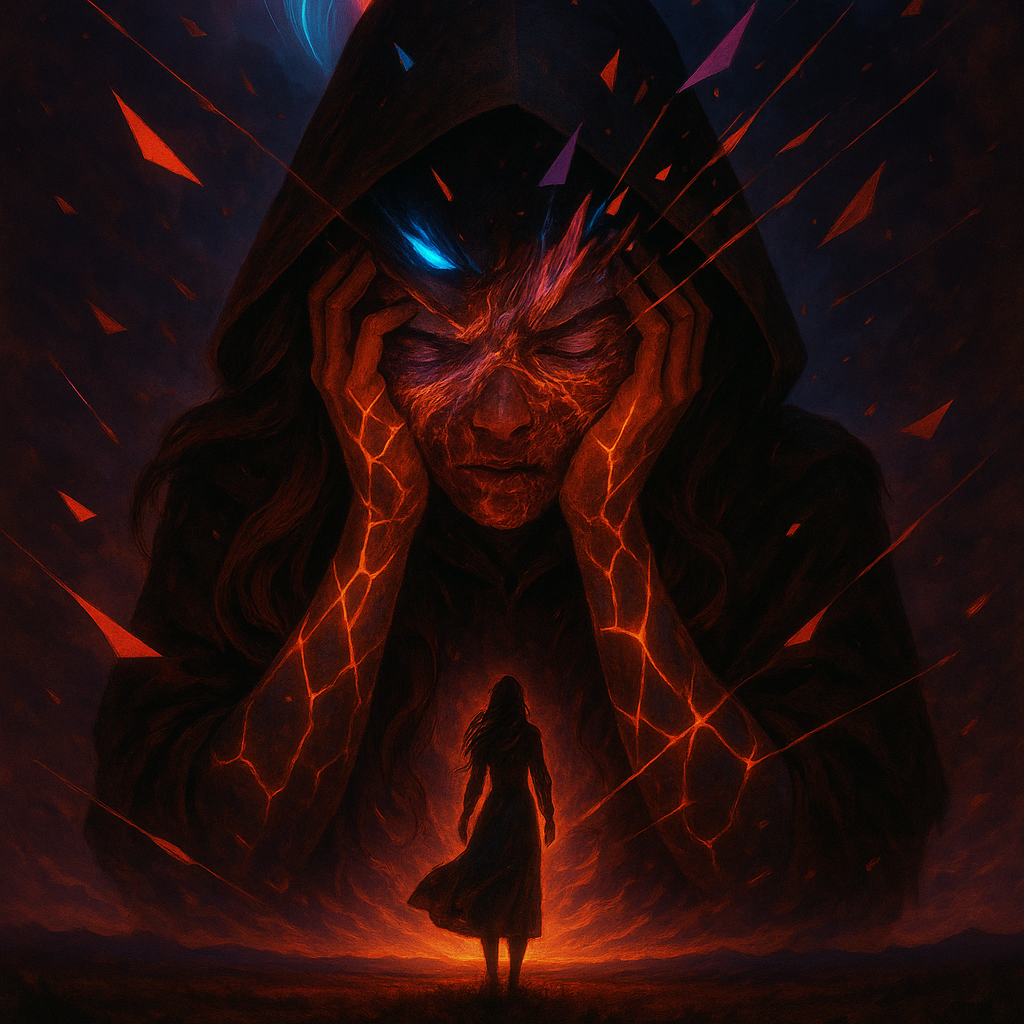 Cinematic glitchpop meets darkpop with dense electronic trap rhythms, textured synths, and glitchcore elements, Ambient soundscapes anchor atmospheric verses featuring layered, manipulated female vocals, Emotion peaks in soaring chorus harmonies, interspersed with spoken word sections, Lead vocal is mixed louder than everything else, +6 dB above all instruments, always bright, dominant, and forward, No flat delivery — every phrase is dynamic, expressive, and high-impact, cutting clearly through the entire mix, No background vocals, Cinematic dark-pop anthem at 132 BPM with detuned synth melodies, deep sub-bass, punchy electronic drums, rap