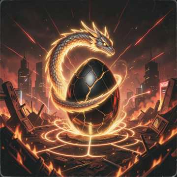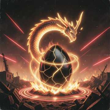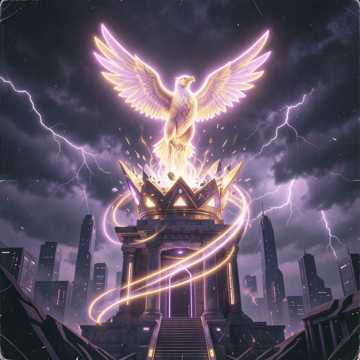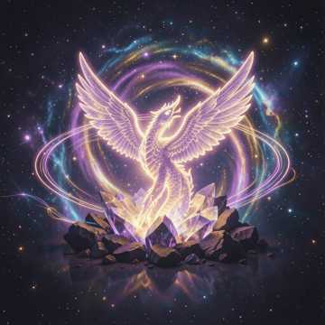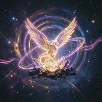 Cosmic electronic fusion, male vocals + semi-rap, dubstep/phonk elements, mystical, powerful, cinematic, rising and falling energy, rebirth, transformation, dragon, phoenix, infinite evolution