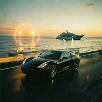 Luxury urban chill, smooth hip-hop beat, deep bass, male + female vocals, classy vibe, wealth, abundance, success lifestyle, relaxed, confident, sunset, cinematic, high vibration