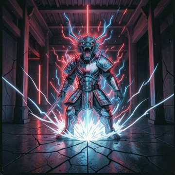 High-energy electronic dubstep, fast BPM, heavy bass drops, glitch effects, male rap + female melodic vocals, samurai spirit, anime futuristic, motivational, powerful, cinematic, aggressive yet uplifting
