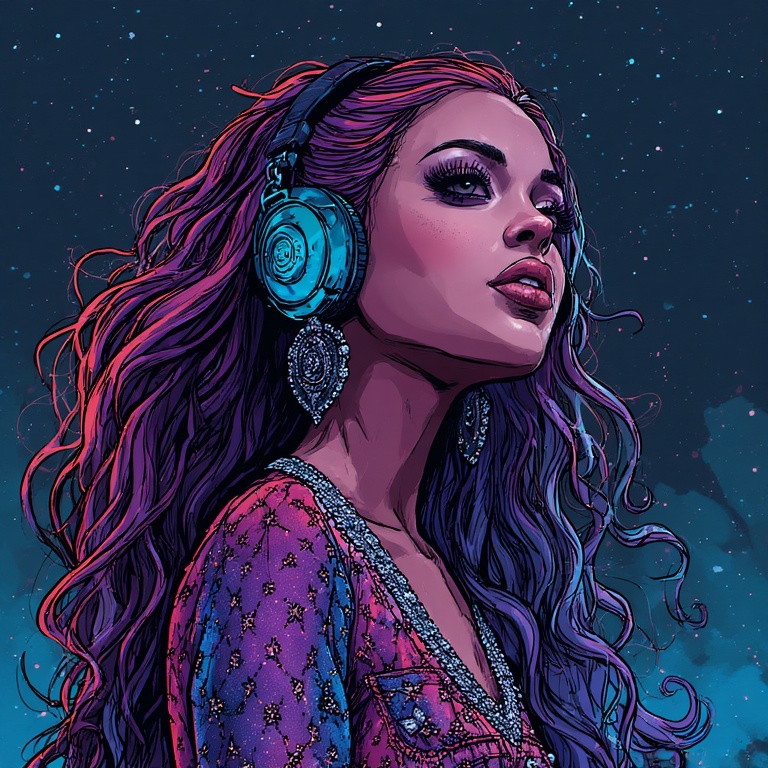 Opens in silent whispers, Celestial, twilight, universe, galaxy, astral, dimensions, glittery, Random Epic bass drops like thunder, Layered, breathy, Old Norse dialect, echo through imagined fjords and astral planes, Shamanic, swirling wind, Tagelharpa & Nyckelharpa, raw, resonant tones, Scandinavian Frame drums & bone flutes: Earthy, astral drift, traveling through stars, seeress, mythic queen of the north, Snow-covered forests, moonlit fjords, and sacred fires, enchanted, Romance, echoes, nuances, whispery, epic, layered, cascading effect, alto, soft synth arpeggios, delicate chime effects, hypnotic atmosphere, surrealism, starlight flickering, synth plucks, reverb and delay, floating quality, glockenspiel accents, mystical ambiance sweeps, Distant Echoing, dark, magical, otherworldly, extended, Low-frequency whispers, Nordic textures, Viking Queen, Icelandic, epic xpostalworker euphoria, ‑piano
