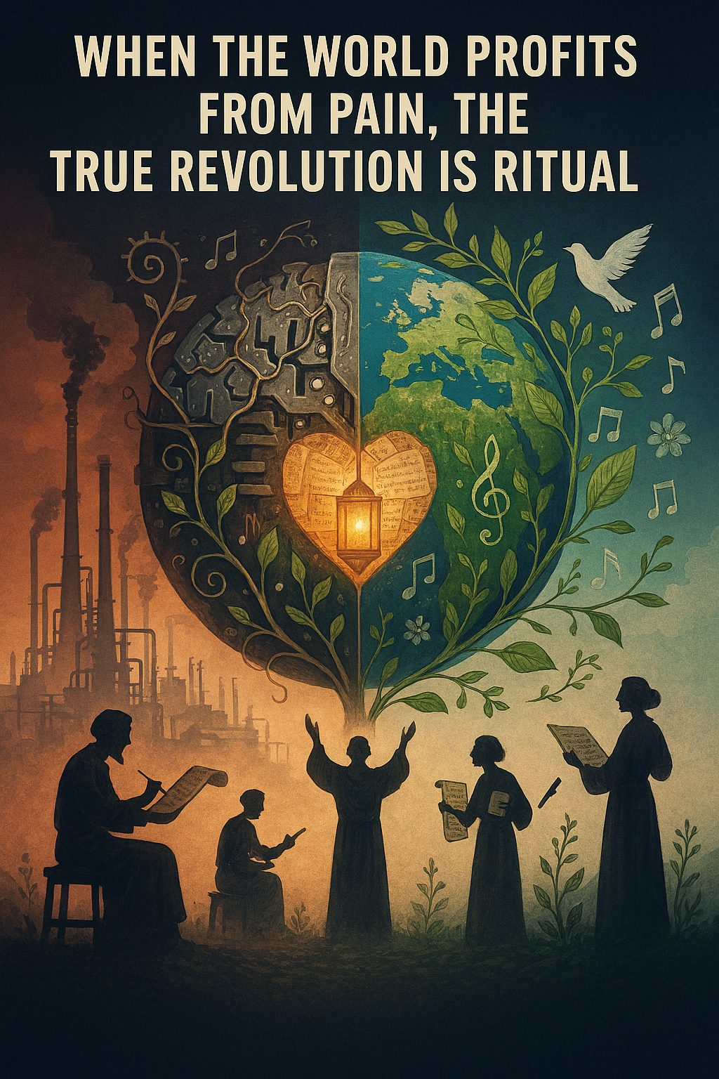 Production: A cinematic, mythic gospel‑folk ballad, Begin with lush piano solos and echoing textures, setting an uplifting indie‑folk foundation, Layer in post‑grunge guitars- distorted, raw, and atmospheric- shadowing the piano, Add Kubiwave mist: reverb‑drenched synth swells, lantern‑like tones, and ambient echoes, Introduce a grunge‑inspired rhythm section with heavy bass and drums, building intensity, Infuse a bluesy Southern gospel twist with organ flourishes and subtle slide guitar, Vocals should move between clear, melodic gospel phrasing and raspier grunge harmonies, with call‑and‑response echoes in the final chorus, The overall feel is a ceremonial hymn of grit and grace- uplifting yet storm‑touched, devotional yet mythic