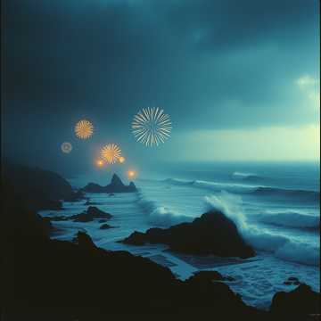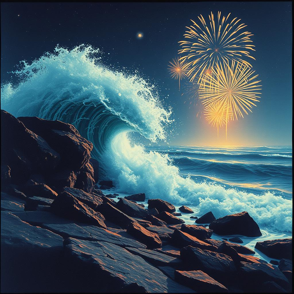Ambient Japanese-style intro with winter sea wind, deep distant taiko drums and waves, slowly building into energetic instrumental with shamisen and powerful festival rhythm, Inspired by stormy coastal Japan, featuring epic drums, modern EDM drops, and traditional Japanese atmosphere, Thunder, waves, firework-like percussion, Strong stereo spread and cinematic energy, Shamisen solo like lightning, Taiko like thundering waves, powerful female vocal rising like a storm over the Japanese sea, fireworks as thunder spirits in the sky, strong winter wind, heroic rhythm, Shouting crowd responses like “そーれっ!” and “よいやっさー!” are heard throughout, Chorus builds with claps, firecracker sounds, and dramatic melodies, Perfect for a high-energy finale, celebrating unity and survival, BPM=150