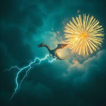 Japanese Festival EDM / Epic Taiko Trance, The track starts with rumbling thunder and deep taiko drum rolls, Shamisen riffs build tension, A majestic female vocal shouts powerful Japanese lines about dragons and lightning, The beat intensifies into a trance-like 4-beat with electric koto and metallic synth layers, In the chorus, dragon roars and lightning FX crash through the mix, A fierce celebration of primal forces and cosmic power, wrapped in a futuristic festival, Vocal enhancement, Wide stereo field, Concert hall ambiance, Spacious midrange, Clean mix, Balanced compression, Mastered at -16 LUFS, Rich stereo reverb, Clear highs, Deep controlled bass, Polished final mix, Audience, Crowd noise