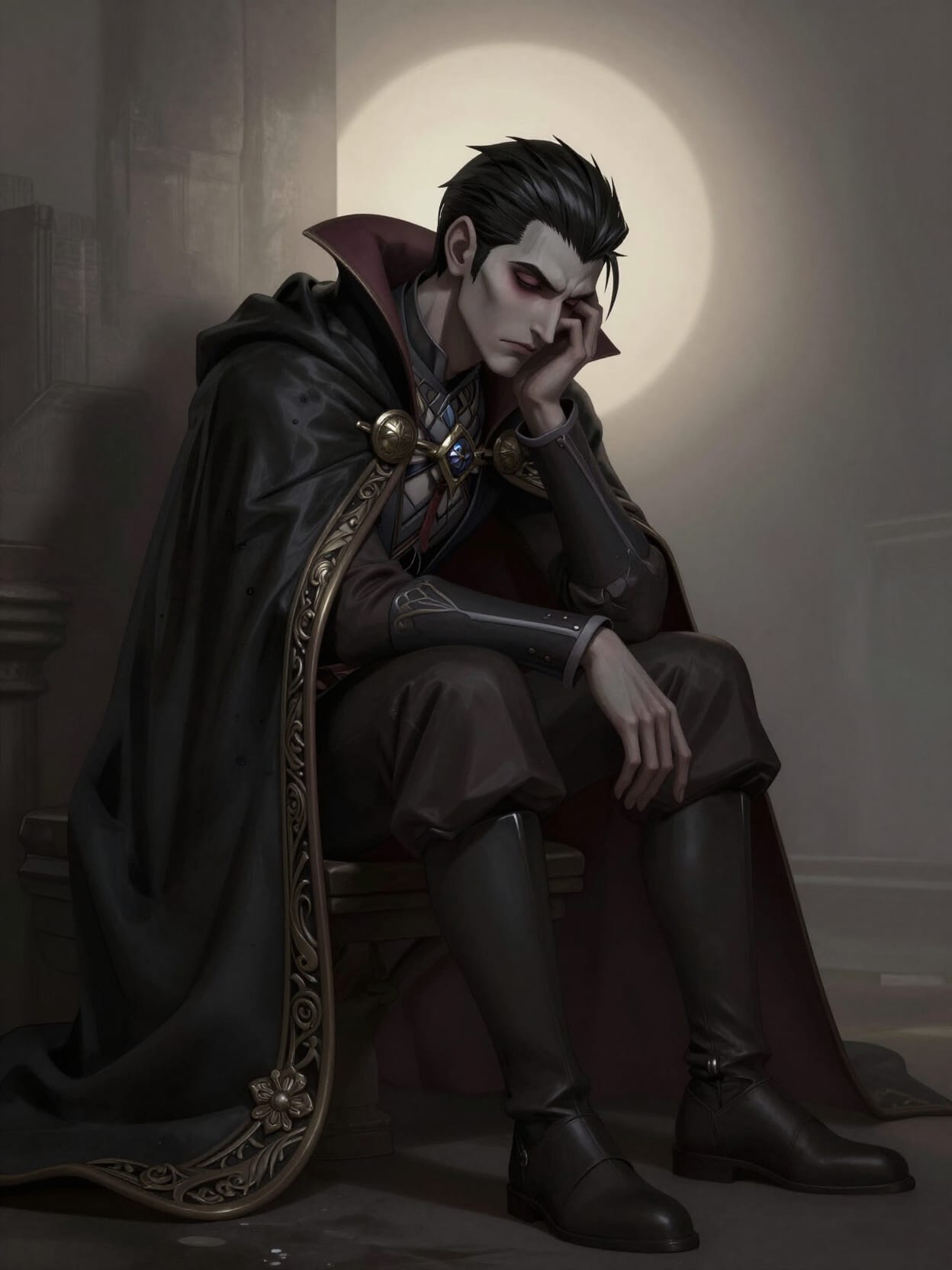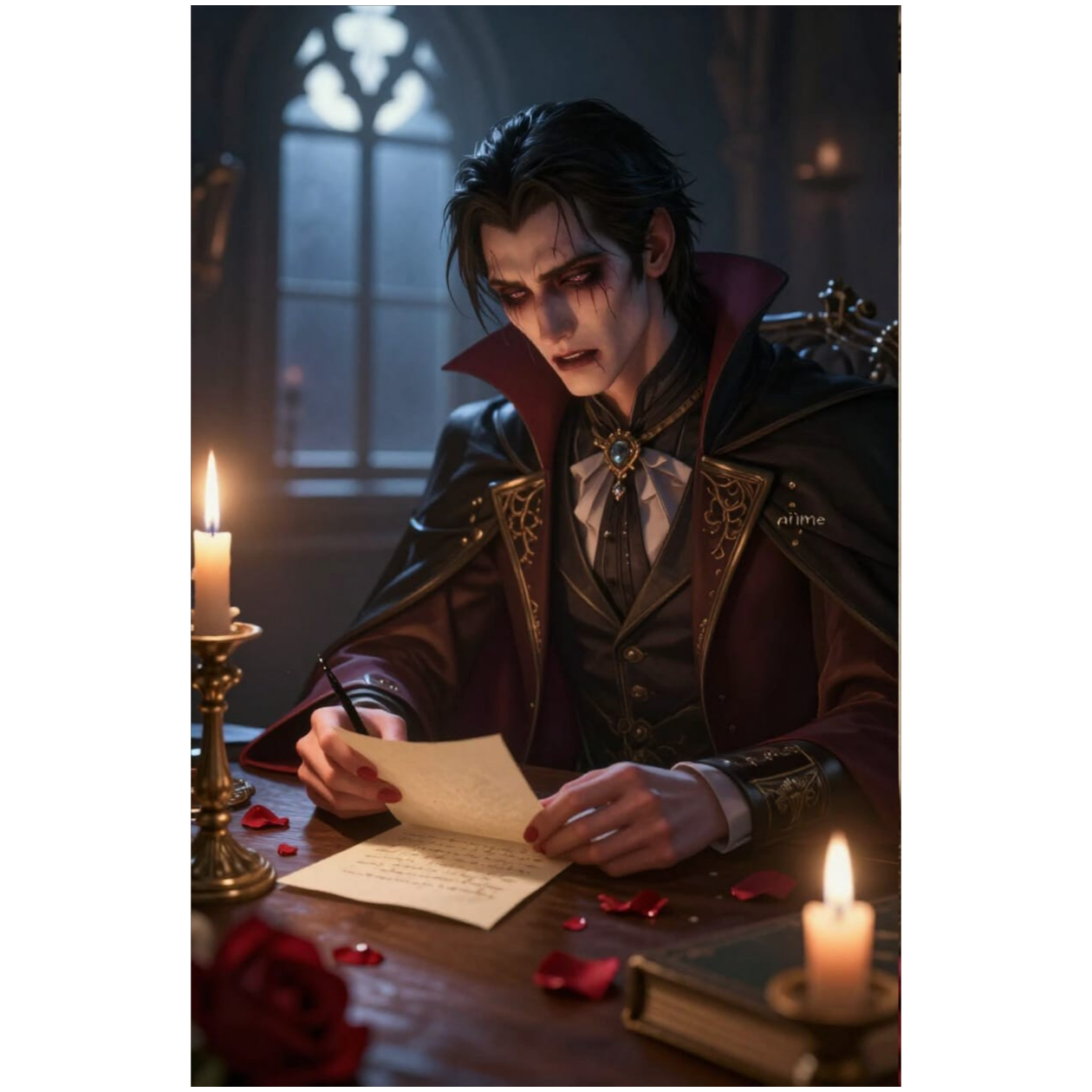 A slow, cinematic, gothic love ballad inspired by a tragic vampire’s final words to his dying mortal lover, Emotional and heart-wrenching, filled with longing, loss, and eternal love, Instruments: soft piano, haunting strings, subtle atmospheric pads, gentle reverb, Vocals: male, soft and trembling, full of sorrow and devotion, Dynamics: start intimate and quiet, swelling into emotional chorus, then soft, lingering outro