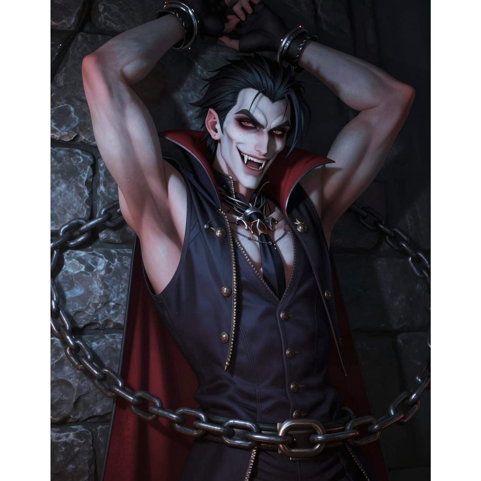 Dark, sultry alt-pop ballad with male vocals; smoky Rhodes and warm bass pulsing under a slow trap-inflected groove, Verse drums stay minimal and close, with finger snaps and distant toms; chorus blooms with lush pads, reverb-soaked guitar swells, and stacked harmonies, Occasional distorted vocal doubles and whispered ad-libs add fanged intimacy and tension; final chorus leans into a half-time sway and lingering delay tails, sensual