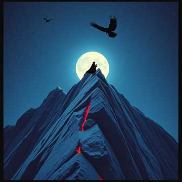 metal, Atmospheric black metal with male vocals: tremolo-picked guitars like cold wind, blast beats that surge and recede, and distant choral pads, Verses sit in a mid-tempo stomp with reverb-soaked yodels and raspy growls; chorus explodes into full-speed fury, layered screams, and echo-drenched high yodel calls, Occasional whispered doubles and low drones under the lead create a claustrophobic, eerie mountain-night atmosphere, male vocals, atmospheric black metal