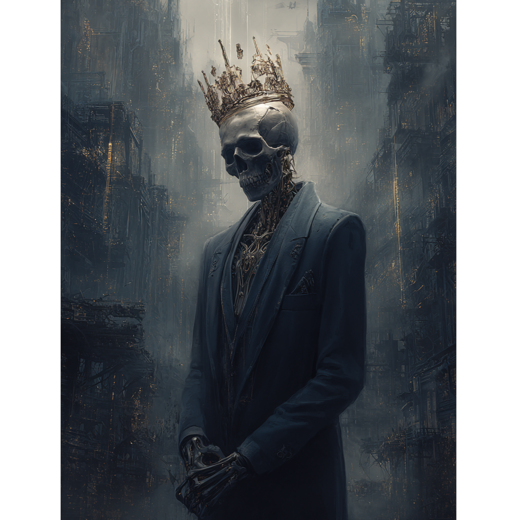 Nu Metal, Gothic, EBM, 8-bit, aggressive, melodic, 4 basslines, half diminished chords, experimental, dystopian themes, distorted synth lines, dark, funk