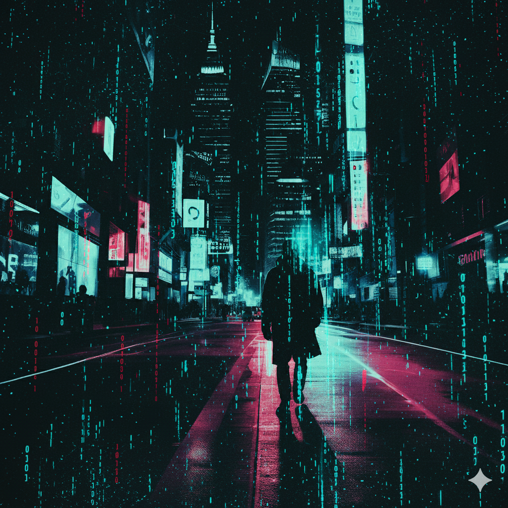 Cinematic Cyberpunk Synthwave — a hybrid of synthwave, cyberpunk, darkwave, industrial, and orchestral cinematic elements, Features dystopian storytelling, glitchy electronic textures, analog synth arpeggios, industrial percussion, choir, strings, and dramatic orchestral drops