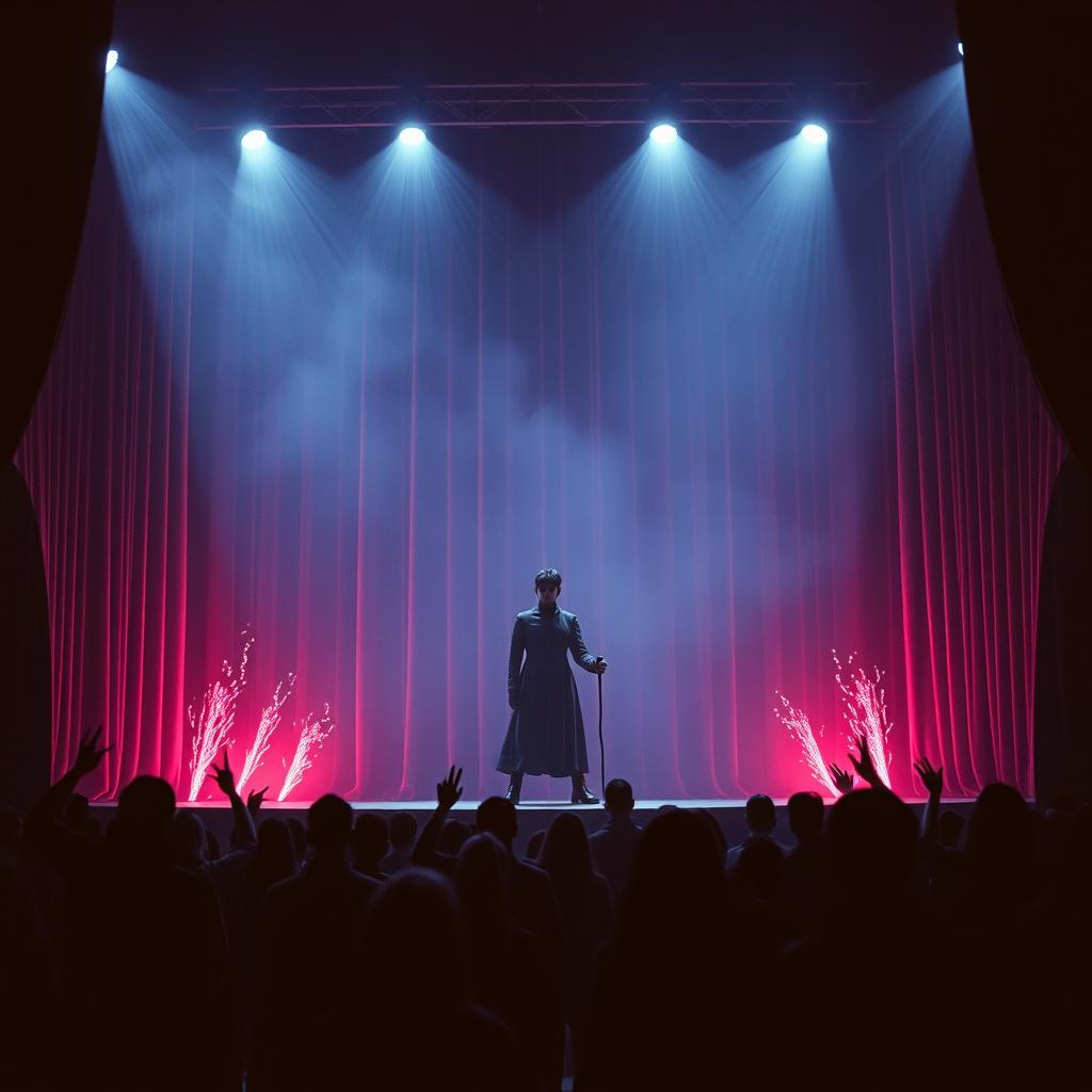 Live Band, Crowd cheering, crowd singing, Industrial metal and synth, female vocals, upbeat and uplifting