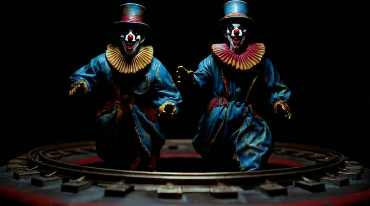 Dark carnival reggaeton fusion, sinister accordion, heavy dembow beat, dramatic circus atmosphere, humorous but intense, 100 bpm