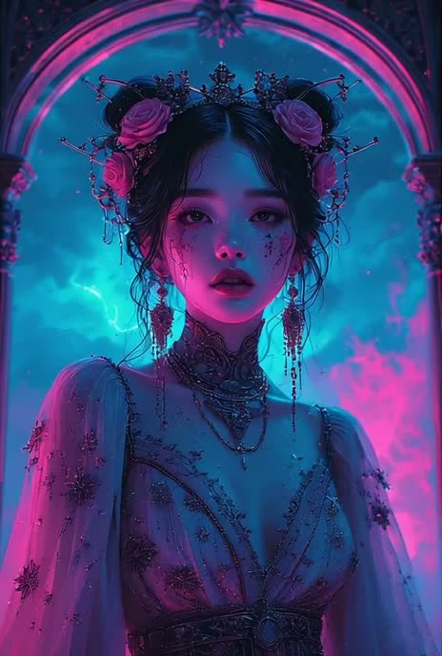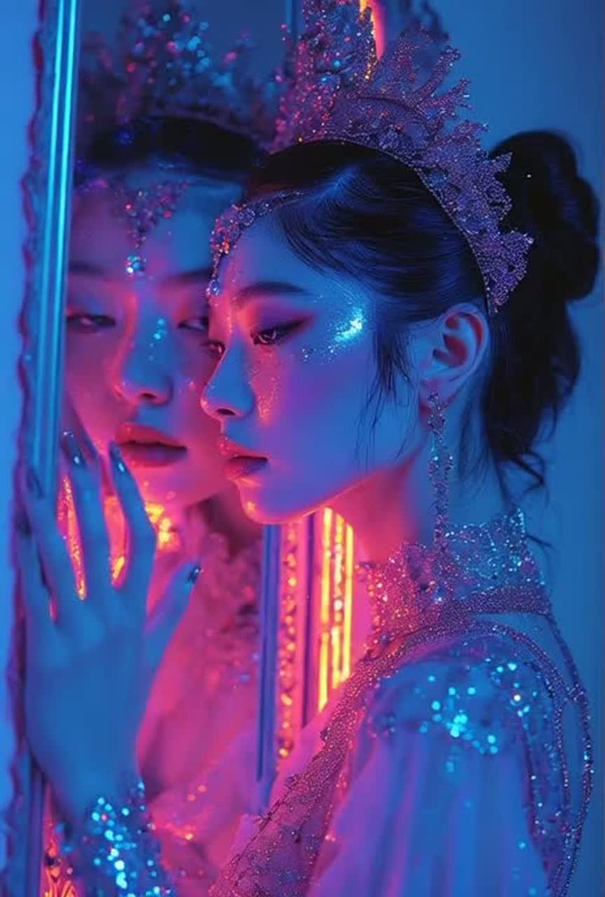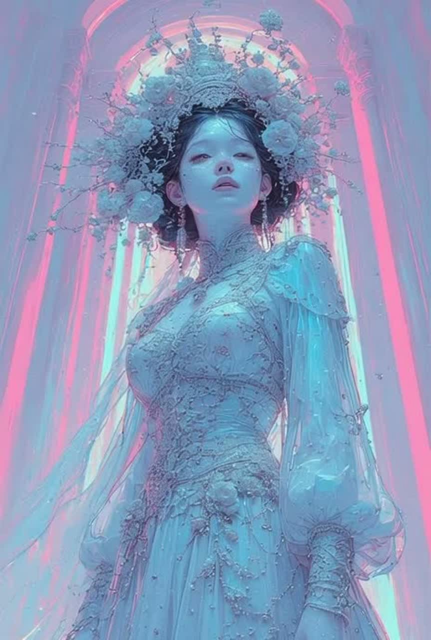 Style: Glitch-idol hyperpop × ancient kagura bells × PC Music on bath salts x glitchcore backed by a strong and complex piano melody; 200 bpm that keeps skipping beats like a scratched CD of hell, Insane breakbeat, trip hop, reverb filled interruptions that bleed back into a syncopated beat, A gospel of broken machines, and dissonant chords that somehow morphs into a magic melody that weaves a spell on the whole world, Key: Chromatic mess in C# → everything pitch-shifted ±50 cents at random