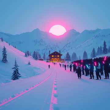 High-energy Austro-pop ski anthem, Salzburg dialect, 128 BPM, B minor, Driving dance beat, synth leads, electric guitars, trumpet stabs, shout-along chorus, male lead with punchy accent, festival-ready mixing, 3:30
