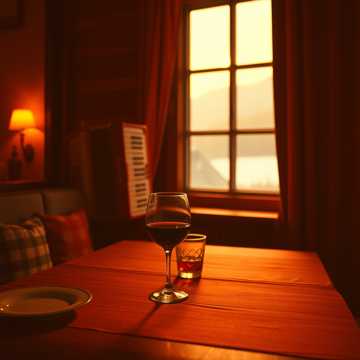 Austro-pop intimate evening song, Salzburg dialect vocals, 86 BPM, C major, Warm acoustic guitar, mellow upright piano, soft brushed percussion, warm cello pad, close-mic female lead voice with Salzburg accent, subtle three-part backing harmony in chorus, cozy kitchen-table vibe, singable chorus, 3:20, clean modern mix