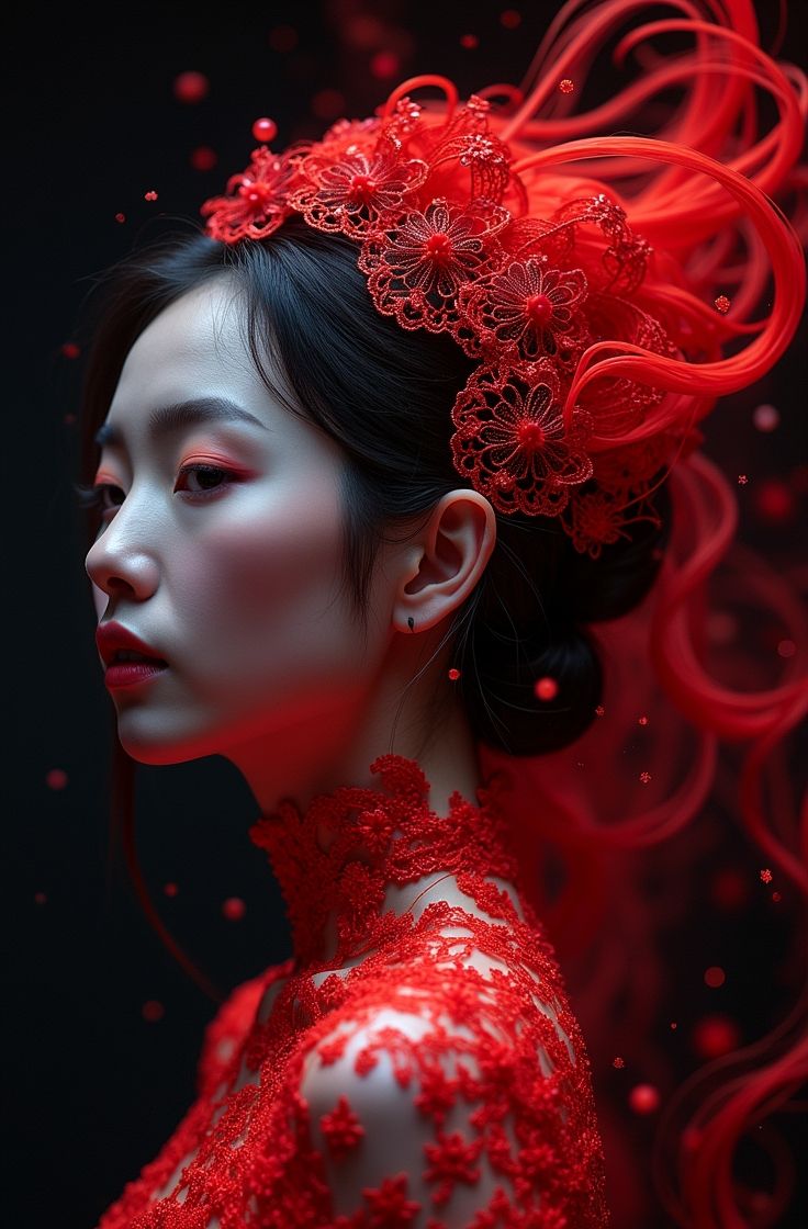 Sophisticated Electro-Chanson, mid-tempo Trip-Hop beat, elegant FEMALE vocals, haughty and lovely tone, subtle oriental synth textures, deep melodic bass, clean electronic percussion, no male voices, atmosphere, emotional but Chorus - soft and smooth
