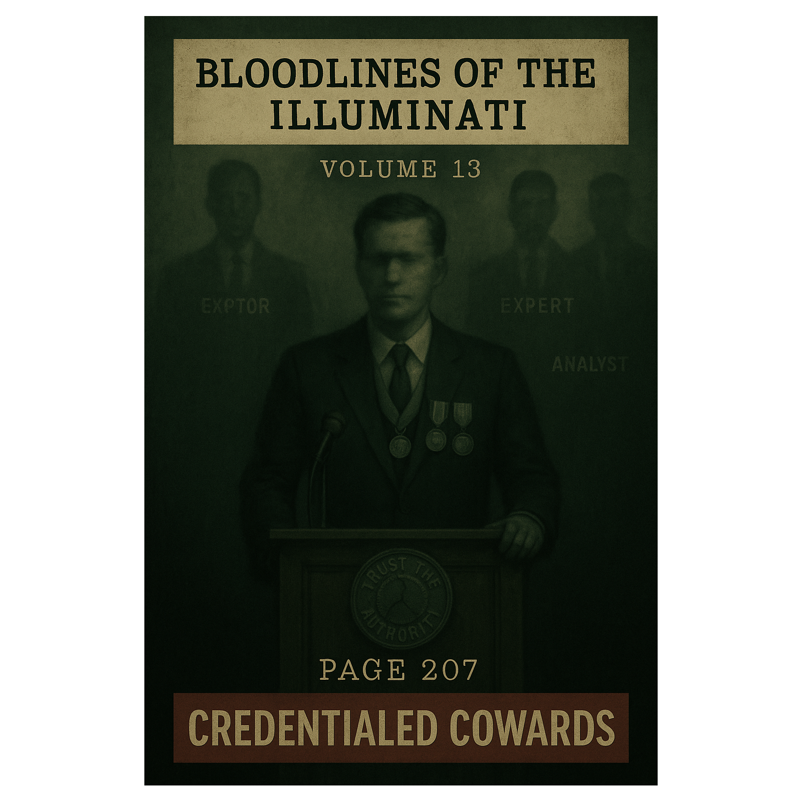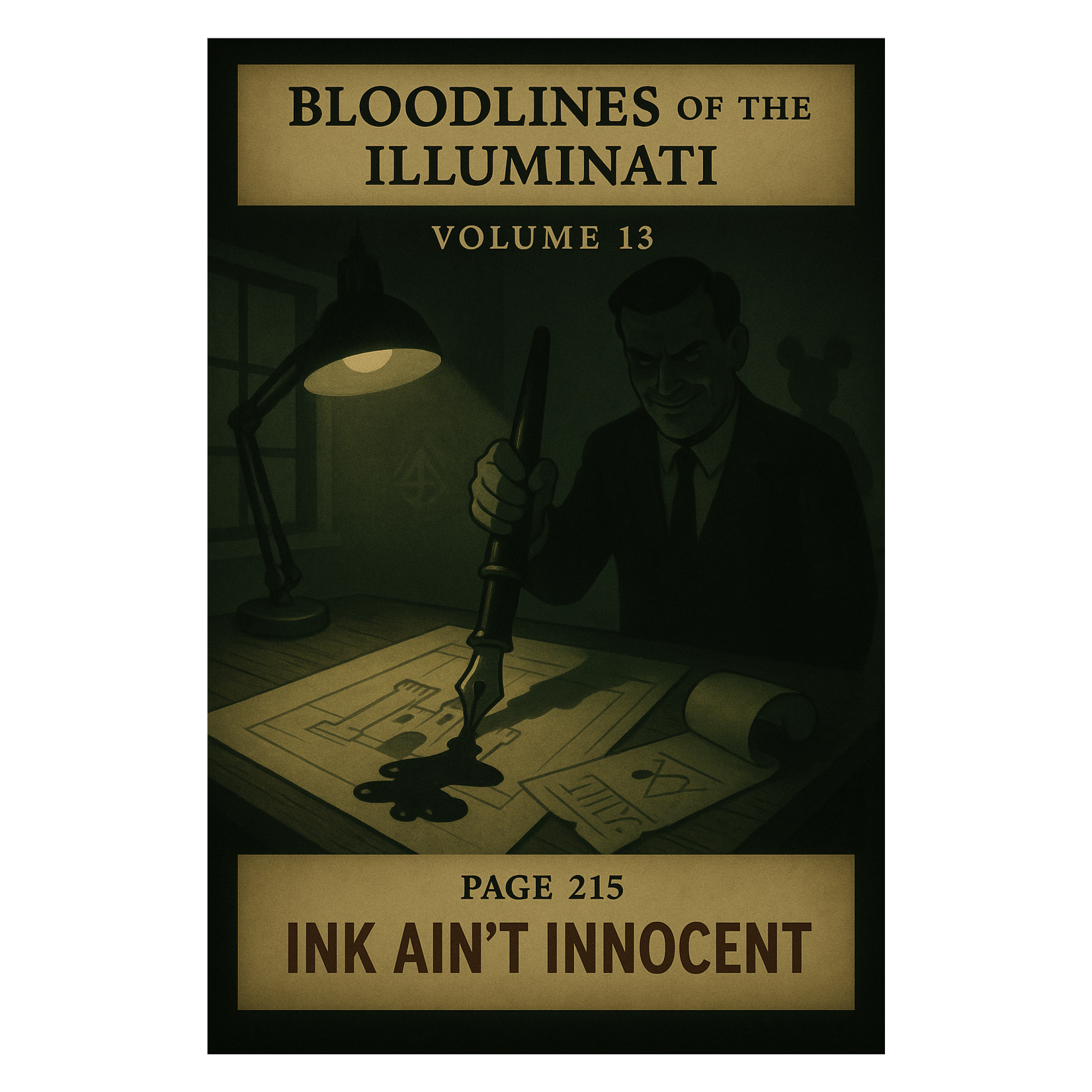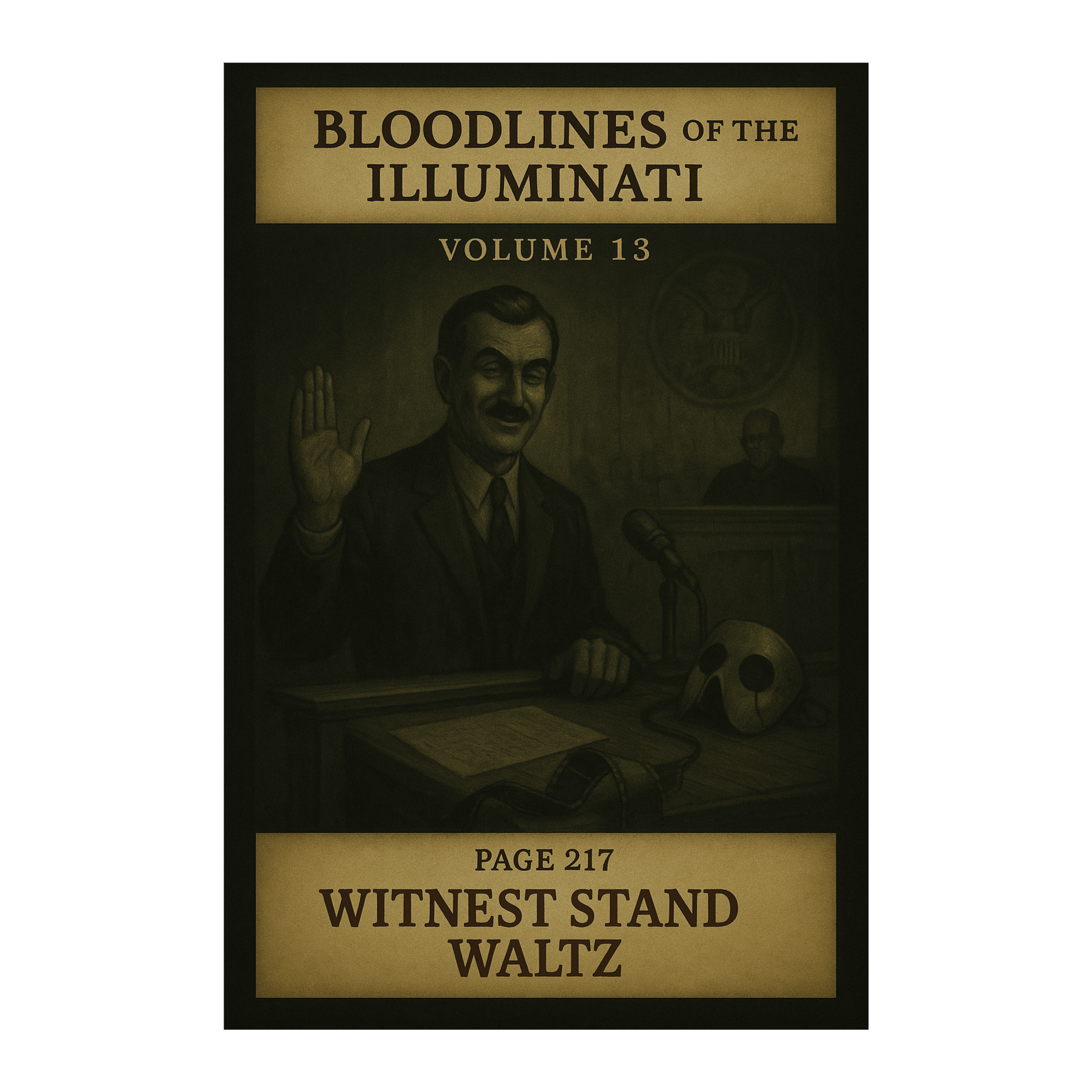 Dark East Coast boom-bap track with layered piano loops, low bass drones, and dusty breakbeats, Features haunting orchestral stabs and vinyl-crackle textures, channeling paranoid energy and mid-tempo swagger, Verses spit with sharp, bitter cadence, The hook punches with layered vocal chops and a militant stomp, evoking secret hearings, shattered legacies, and power cloaked in innocence