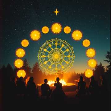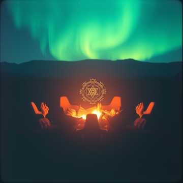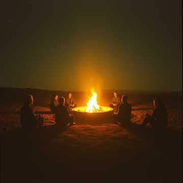 Atmospheric spoken word soundscape with a cinematic and ethereal quality, The track features a layered arrangement of multiple German-speaking voices, both male and female, creating a communal campfire atmosphere, The instrumentation is minimal, consisting of lush, ambient synthesizer pads that provide a warm, harmonic foundation, Subtle reverb and delay effects are applied to the vocals to enhance the sense of space and intimacy, The tempo is slow and rubato, following the natural cadence of the speech rather than a fixed beat, The overall mood is reflective, welcoming, and deeply emotional, characterized by a clean and professional production that balances the diverse vocal timbres against a soft, glowing electronic backdrop