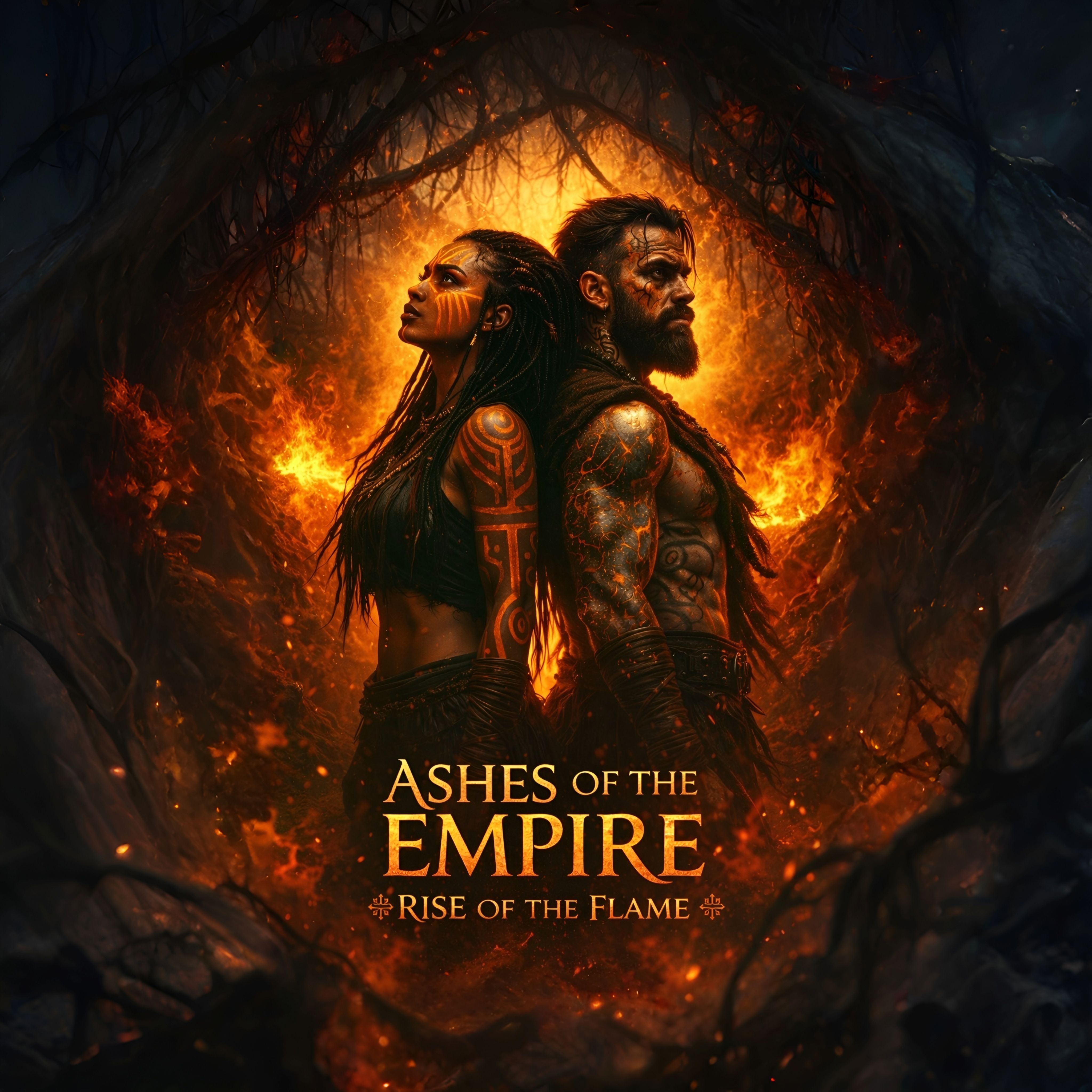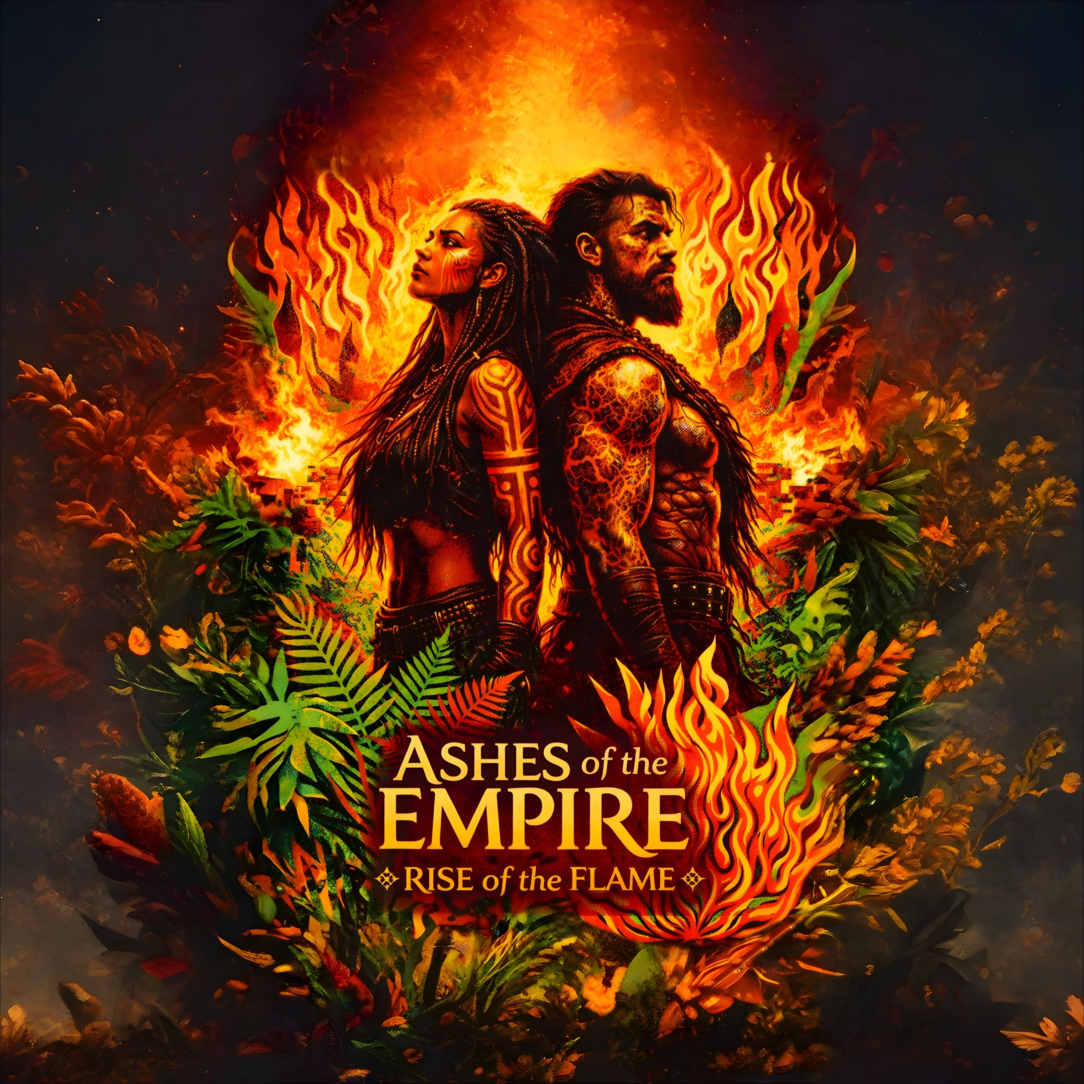 Dubstep-reggae hybrid, dark cinematic tribal atmosphere, Heavy sub-bass drops, deep reggae groove, war drums, jungle ambience, glitch textures, echoing percussion, and distant choir chants, Vibe: a primal, rebellious jungle revolution at night, Vocals: Preserve original melodies, phrasing, and emotional cadence strictly, • Male vocals: Collective "We" perspective [Ashes of the Empire: Voices of the Flame], • Female vocals: Individual "I" perspective [Ashes of the Empire: The Fire Within], Blend voices via alternating sections, duet harmonies, call-and-response, overlapping echoes, whispered transitions, chant overlays, and atmospheric FX, Drops must amplify the chorus with massive bass pulses and tribal drums, The emotional arc evolves from individual resistance ["I rise"] to collective uprising ["We rise"], climaxing in an epic, layered final chorus