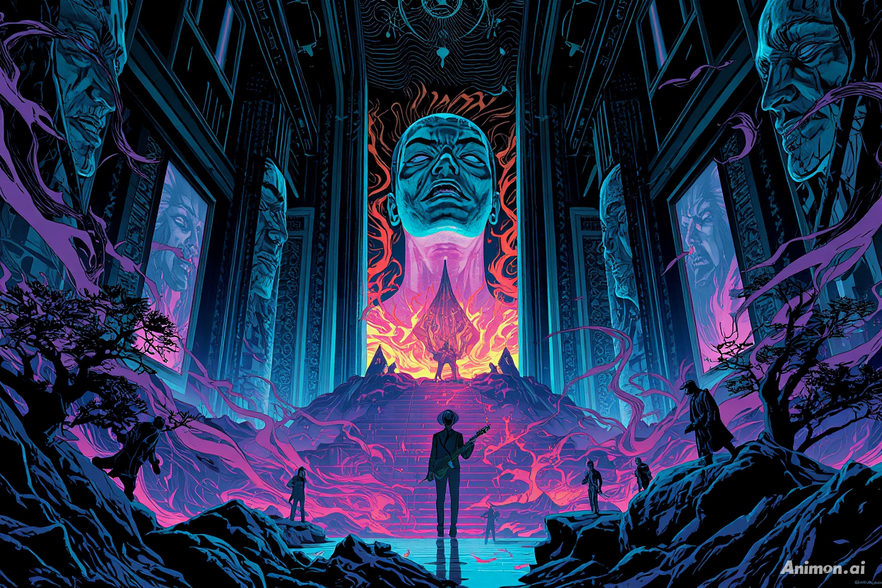 medium-slow tempo (90-95 BPM), complex rhythmic patterns, odd time signatures (frequent use of 5/4 and 7/4), polyrhythmic interplay between guitar, bass, and drums, aggressive syncopation, mechanically tight drumming with unpredictable fills, non-danceable but hypnotic pulse, heavy use of rhythmic displacement, angular phrasing, sudden stops and dynamic shifts, overall a cold, calculated momentum with a sense of restrained violence, balance dissonance with periodic consonant riffs, create contrast between brooding atmosphere and sudden, clean lead passages, ‑Vocals like death metal