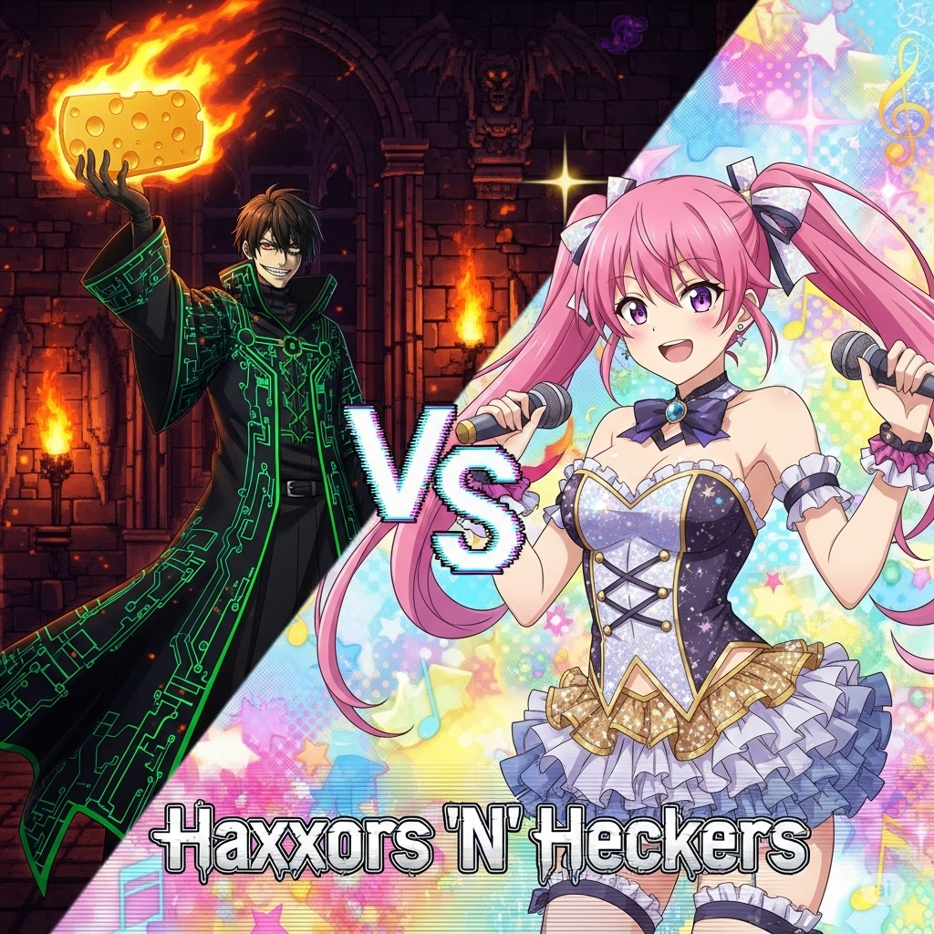 1mmopop, [(genre: Hyperpop—Nerdcore Duel—Kawaii EDM—8-Bit Goth)—(instr: Glitch Accordion—8-Bit Arps—Sparkling Synths—Gothic Choir)—(vocals: Nerdcore Rap—Kawaii Alto—Heavy Autotune—Ska Yodel Pulse)—(texture: Glitchy—Polished—High-Energy)—(mood: Playful—Duel—Bombastic)]