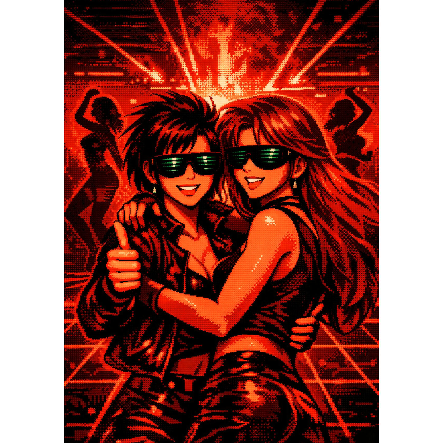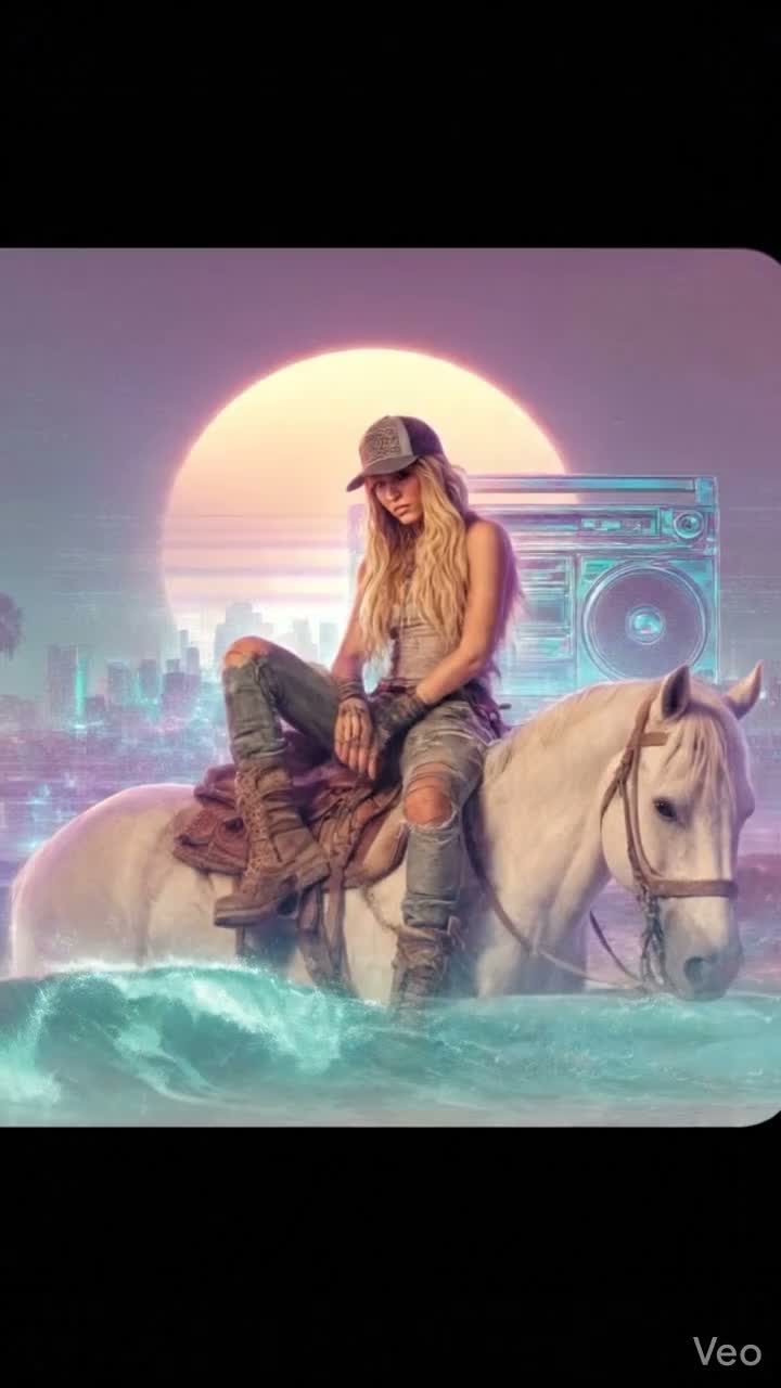 Modern 1980s thriller-pop meets festival-ready dance: 114 BPM, 4/4, D minor with a Dorian lift in the hook, Drums: tight Linn-style kick, bright clap, gated snare, big tom fills, plus tiny metallic ticks, Bass: warm mono analog layered with a clean sub, locked to short offbeat stabs for that Calvin-style drive, Synths: glassy arps, woozy tape-pad, FM bell plucks, and a crunchy 16-bit lead that owns the chorus like a pixel anthem, Vocals: emotional female lead—close in verses, soaring in the hook with doubles and airy harmonies; a few chopped syllables as texture, Arrangement: 4-bar intro (tape hiss + chime) → V1 sparse → Pre with rising toms → Chorus full-stack with the 16-bit motif → V2 adds a counter-arp → Bridge drops to pad swell + filtered drums → Final chorus with extra harmony and octave lift → short tape-flutter tail, FX: reverse cymbals, long plate reverb, quarter-note delay throws, subtle bit-crush on the chorus lead, Mix: wide chorus, crisp top, controlled low end, and a cle