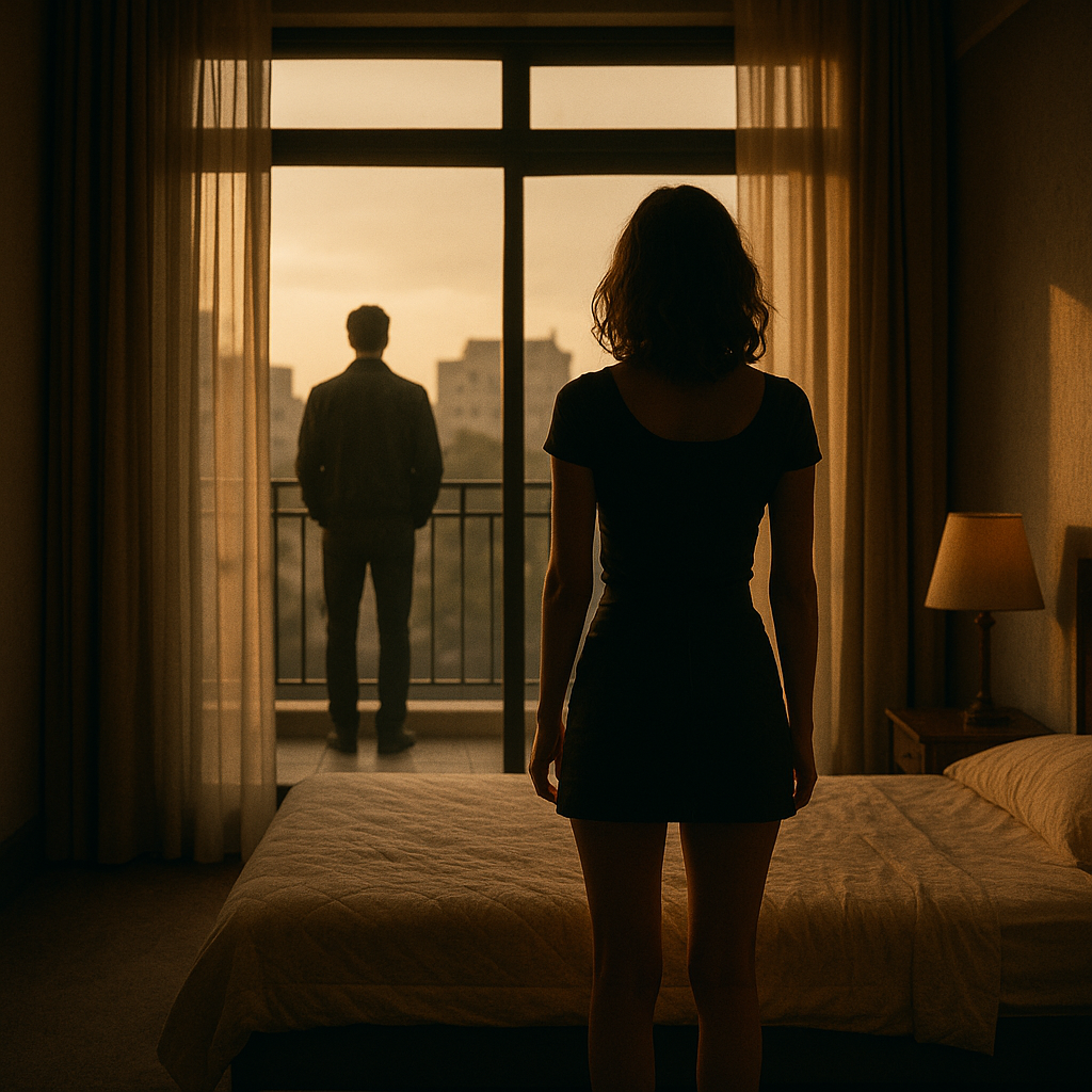 Spanish urban ballad featuring intimate melancholic male vocals with Madrid accent, fingerpicked Spanish guitar with subtle distortion touches, atmospheric synthesizer pads and gentle string washes, restrained bass guitar, urban ambient textures, Contemplative verses building to emotional but contained choruses, Tempo 80 BPM in 4/4 time, Themes of passionate love with poetic introspective Spanish lyrics in classic 80s Spanish ballad style, Dynamic structure from acoustic intimacy to gentle orchestral swells, featuring Spanish guitar solo with restrained flamenco influences, Classic 80s Spanish production with warm analog compression, subtle cathedral reverb, lush but understated synthesizer layers, Emotional vocal delivery ranging from whispered confessions to tender peaks with signature melismatic Spanish phrasing, capturing Madrid's melancholic urban romance essence without overwhelming rock elements