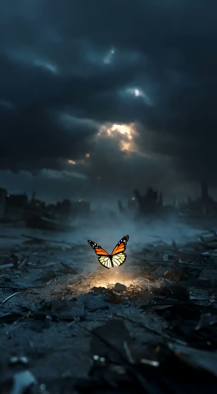 Transcendent cinematic peace anthem blending dark orchestral drone, swelling tense strings, minimal percussion building tension, then dropping abruptly, before voice fragments, Neo-classical minimal dark folk, sparse piano, delicate strings emerging from near-silent to dominant, Deep distorted male for geopolitical fragments, soft fragile female whisper for butterfly hope, Opaque feel with radio static, distant sirens, heavy reverb, Butterfly effect starts inaudible and grows to light, Ends in quiet hopeful orchestral swell with pure fragile piano, 2026 Dolby Atmos 9, 1, 6 production, Streaming clarity, cinematic depth, wide dynamics, phase-aligned 24-bit/192kHz mix, Natural acoustics, expressive nuance in drone swells and whispers, Immersive spatial beds and height objects create profound emotional journey from global tension to individual hope, ‑autotune, ‑overcompression, ‑pop hooks, ‑cheesy uplift, ‑synthetic textures, ‑clipping, ‑artifacts, ‑stereo imbalance, ‑artificial reverb, ‑robotic, ‑heavy percussion, ‑upbeat tempos, ‑overprocessed vocals, ‑low fidelity, ‑phase issues, ‑digital artifacts, ‑mono incompatibility, ‑excessive compression, ‑synthetic leads, ‑robotic textures, ‑overbright highs, ‑muddy mids, ‑boomy lows, ‑bright pop elements, ‑cheerful melodies