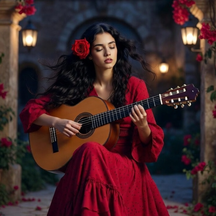 Melancholic flamenco-inspired solo acoustic guitar ballad in minor key, slow 60 bpm, Solo acoustic guitar with passionate fingerpicking, arpeggios, rapid runs, expressive melody, rich extended chords for tension/release, Deep female alto vocal with raw emotional Spanish delivery and warm reverb, No other instruments, Clean natural acoustic sound, minimal processing, 75s "Aaaah" intro (female voice, heavy reverb), Verses emotional build-up, chorus passionate release, After chorus, 20s "Aaaah" interlude with guitar solo, 110s fading outro with repeating lines into endless "Aaaah"s and 30s silence, Mood: deep burning heartbreak, eternal love pain, dramatic regret, ‑drums, ‑percussion, ‑bass, ‑electric guitar, ‑distorted guitar, ‑piano, ‑keyboard, ‑synth, ‑strings, ‑violin, ‑cello, ‑orchestra, ‑brass, ‑woodwinds, ‑rock, ‑pop, ‑metal, ‑psychedelic rock, ‑electronic, ‑edm, ‑hip hop, ‑rap, ‑ambient heavy, ‑cinematic, ‑lofi, ‑chillout, ‑singer-songwriter heavy, ‑male vocals, ‑background vocals heavy