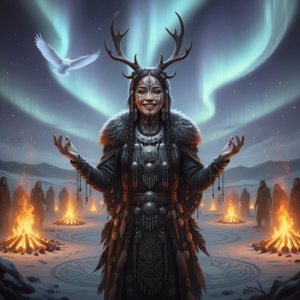 Yakutian jaw harp, Khomus, The deep guttural baritone of male shamanic singing, Yakutian jaw harp, ethnic Tungus folk, ritual drums, throat singing, rhythmic electronics, deep synthesizers, tribal rhythms and backing vocals, new age, mystical trance, The ethnic style of the Yakutian people in a modern interpretation, The vibrations of the Yakutian jaw harp blend with the deep bass of the drums, An old shaman sings in a very low, guttural baritone