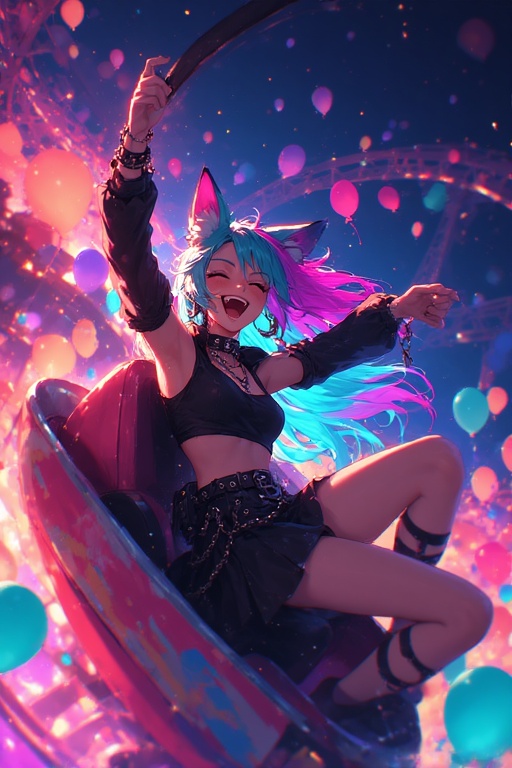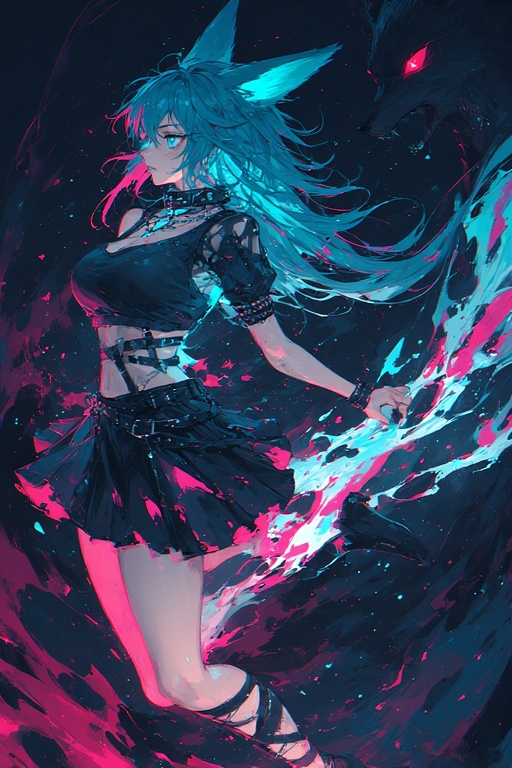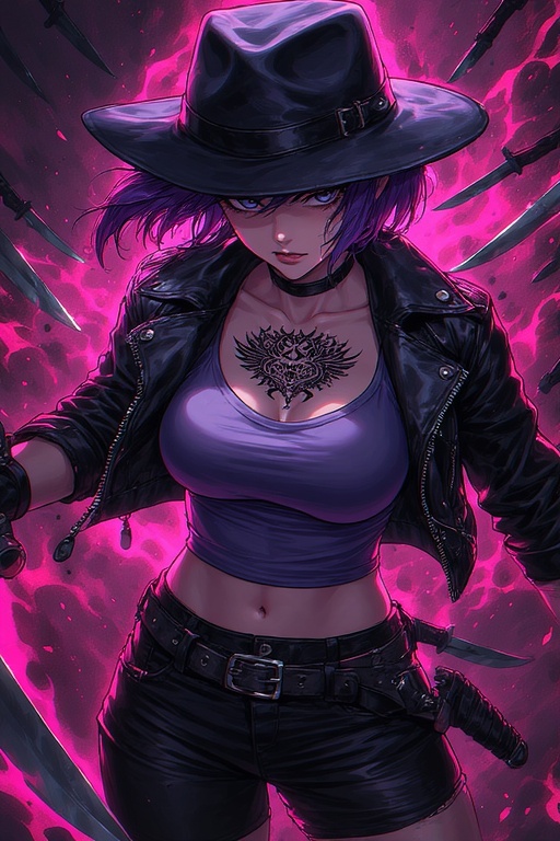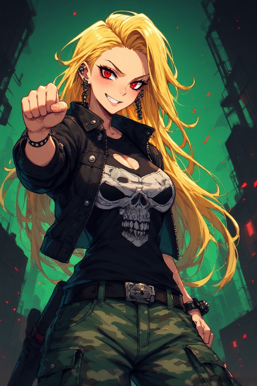 Gritty female voice, dark Punkmetal, Punk-Rock, Popcore, Skater-Rock, Electro-Metal, Synthwave, House, Swancore, Post-Grunge, intense, Minor-Chord, Minor-Key, E-Guitar, gritty, dark tone, very aggressive Guitar-Riffs, Heavy, intense, atmospheric, base guitar, brutal, menacing, Lo-Fi, twisted, colorful, little upbeat, violent, breakdown, Breakbeat, hardtek, electronic
