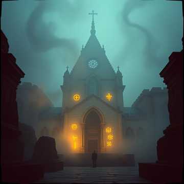 Male vocals, Symphonic metal with a blend of heavy guitars and orchestral grandeur, Incorporate elements of Gregorian chant, Infuse dark synth, upbeat, melodic, violin, cello
