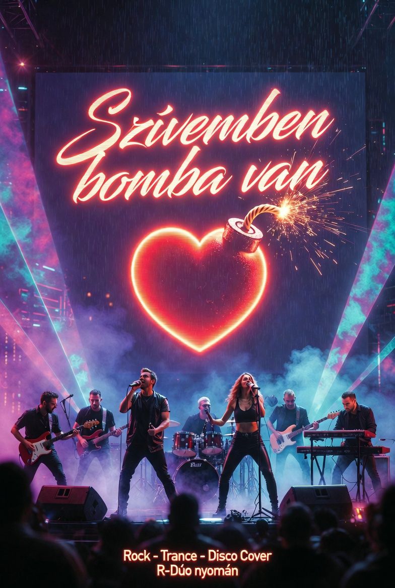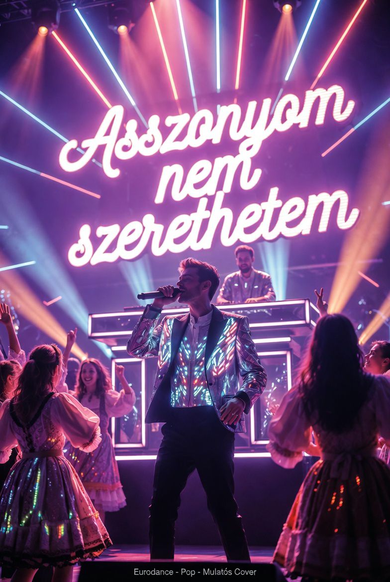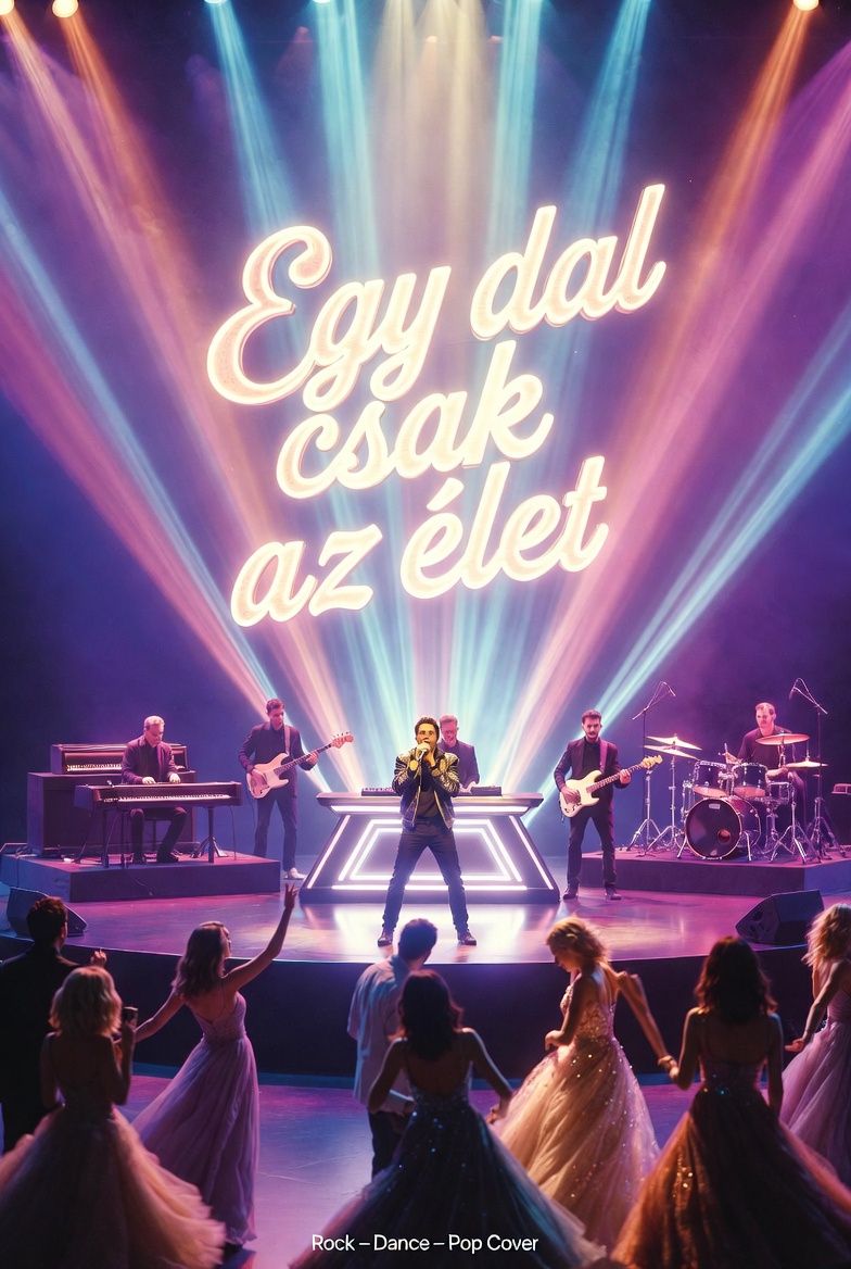 A fusion of rock, trance, dance, and disco, this track starts with tight electric guitar riffs and a pulsing synth bass, Driving four-on-the-floor drums anchor the groove while glossy synth layers float over the top, Male lead and duet vocals in clear Hungarian deliver the melody, each phrase closely tracking the original melody and harmony structure, Dynamic rises in the chorus enhance danceability, with chords outlined by both guitar and synth, ensuring harmonic accuracy, The bridge adds percussive disco-style guitar and filtered synths, before returning to a high-energy, harmonically rich finale