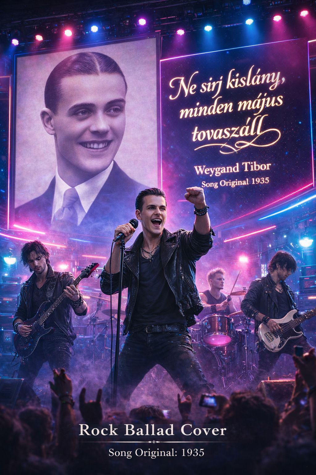 A classic rock ballad led by piano and electric guitar themes, underpinned by dynamic, punchy drums, Lush male vocals soar in clear Hungarian, preserving the original melody and harmonies, Warm bass and gentle organ fill out the texture, with guitar solos accenting emotional peaks