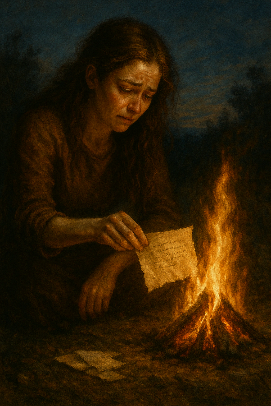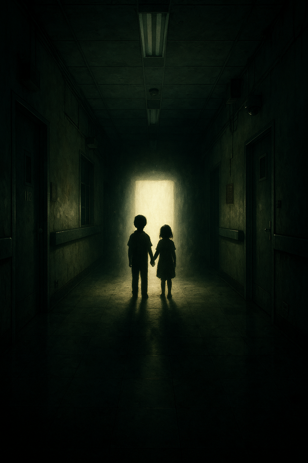Gothic rock ballad with symphonic metal elements, Dark grand piano intro, low string swells, ethereal choirs, heavy distorted guitars entering at the chorus, layered orchestral arrangements, Tempo ~72–76 BPM, key of D minor or C minor, Haunting female lead vocal in Amy Lee style: dramatic, soaring, emotional, with wide vibrato and dynamic range, Backup vocals in eerie harmonies: whispered, distorted, and layered both above and below the lead, creating a ghostly dual-vocal effect, Production drenched in cathedral reverb and delay, creating a gothic cathedral atmosphere, Song builds from fragile piano/vocal into full symphonic-metal climax, then drops back into soft piano ending, Emotional tone: grief, loss, catharsis, bittersweet resilience