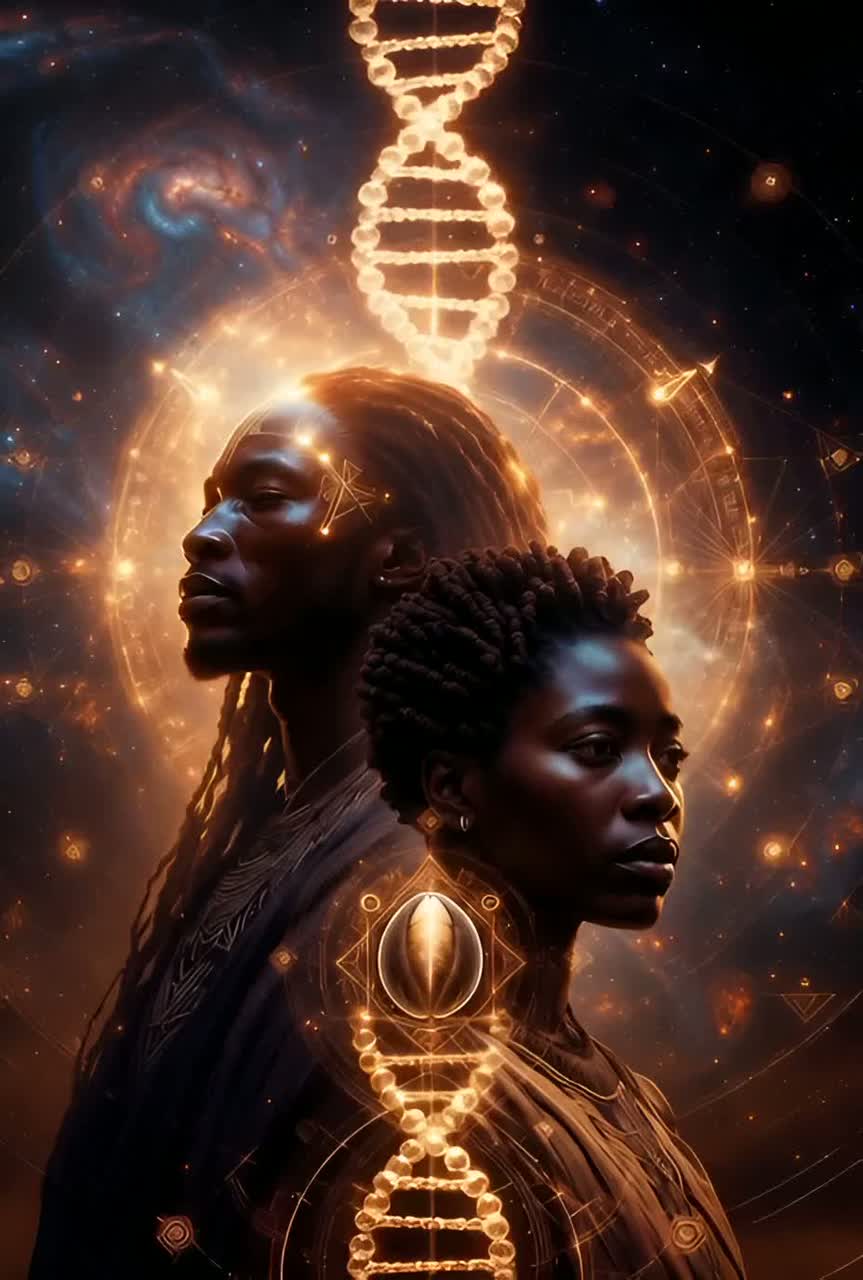 A mystical, ethereal, cinematic world-soul track with angelic female vocals and deep male harmonies, Tribal percussion [frame drum, soft djembe], crystalline pads, cosmic chimes, and shimmering synth-light textures, Style is a blend of energetic healing music, ambient celestial pop, sacred world fusion, and ceremonial chanting, Mood: holy, transcendent, luminous, spiritual, ancient-future, activating, Include layered harmonies, light-language–style vocal textures, and a slow build into a powerful, radiant climax
