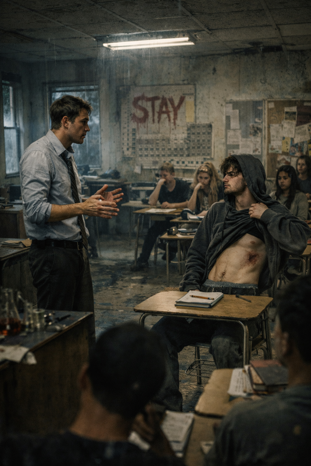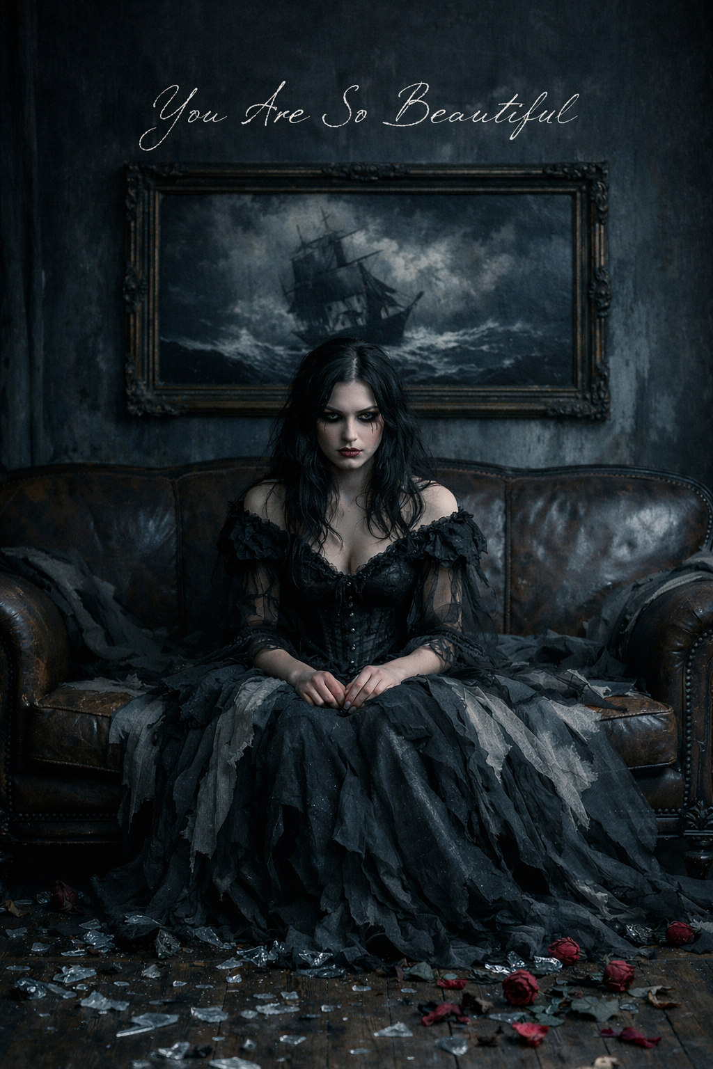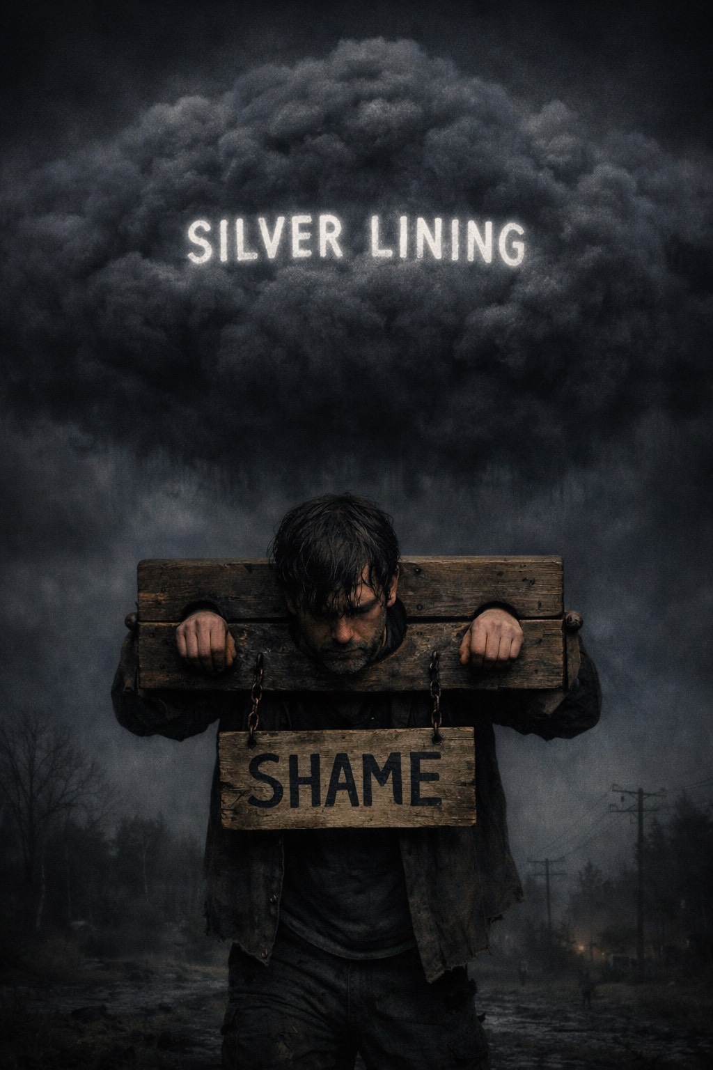 A hard rock / alt-metal / post-grunge hybrid at 65 BPM features low-tuned, high-gain guitars soaked in thick, sludgy sustain, panned wide for depth, Bass is dirty and massive, fused to guitar lines, Drums are punchy, ritualistic, mostly kick and snare, Vocals: deep baritone, chesty, gravelly, restrained and melodically sparse, nearly spoken, Verses are brooding, choruses vent tension without catchy hooks, Sparse, grim guitar leads, Subtle industrial and siren-like effects slip in, The mix is raw, with a dense, muddy low-end and relentless, oppressive weight throughout
