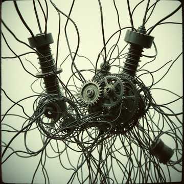heavy distortion, death metal, rapid tempo, rock, dissonant guitars, death metal meets math rock, growling male vocals, chaotic yet precise energy, math rock, relentless double-kick drumming, intricate polyrhythms