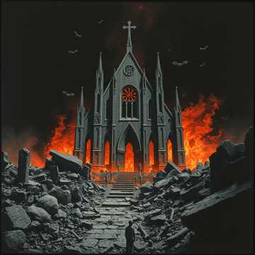 Only Male singers, death core, Symphonic death-metal track with dark orchestral intro, massive breakdowns, long gutturals, choir accents, and apocalyptic lyrics about ascending a ruined crown, Heavy, atmospheric, relentless