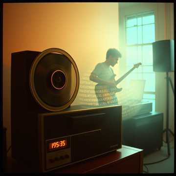 Lo-fi indie-pop-rock demo, male vocals, A raw Portastudio rehearsal recording with a dreamy, downtempo atmosphere, Features a vintage drum machine with a loose, "broken" human groove and natural room mic bleed, Warm, overdriven bass amp tones meet jangly electric guitars and cinematic shoegaze textures, Intimate, understated vocals recorded slightly off-axis with analog tape saturation, Minimal editing, preserving flawed takes, amplifier feedback, and subtle phaser-drenched ambience, Nostalgic, honest, and human