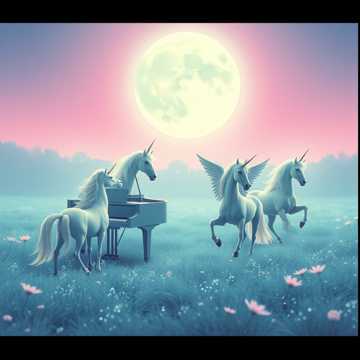 instrumental classical suite movement, whimsical zoological fantasy like Saint-Saëns Carnival of the Animals, playful mythical creatures portrait, frantic sparkling staccato pecking transformed to magical horn glows and wing flutters, energetic chaotic rhythms with sudden soaring bursts, French romantic chamber orchestration, two pianos driving jittery runs and trills, strings with quick detached notes for prancing hooves, high woodwinds and clarinet for ethereal calls and whinnies, light harp glissandi and celesta/glockenspiel for shimmering magic sparkles, uplifting whimsical mood, fast allegro tempo around 140-160 BPM, mystical and fantastical, dynamic contrasts from delicate twinkles to triumphant flourishes, high production quality, enchanting and humorous