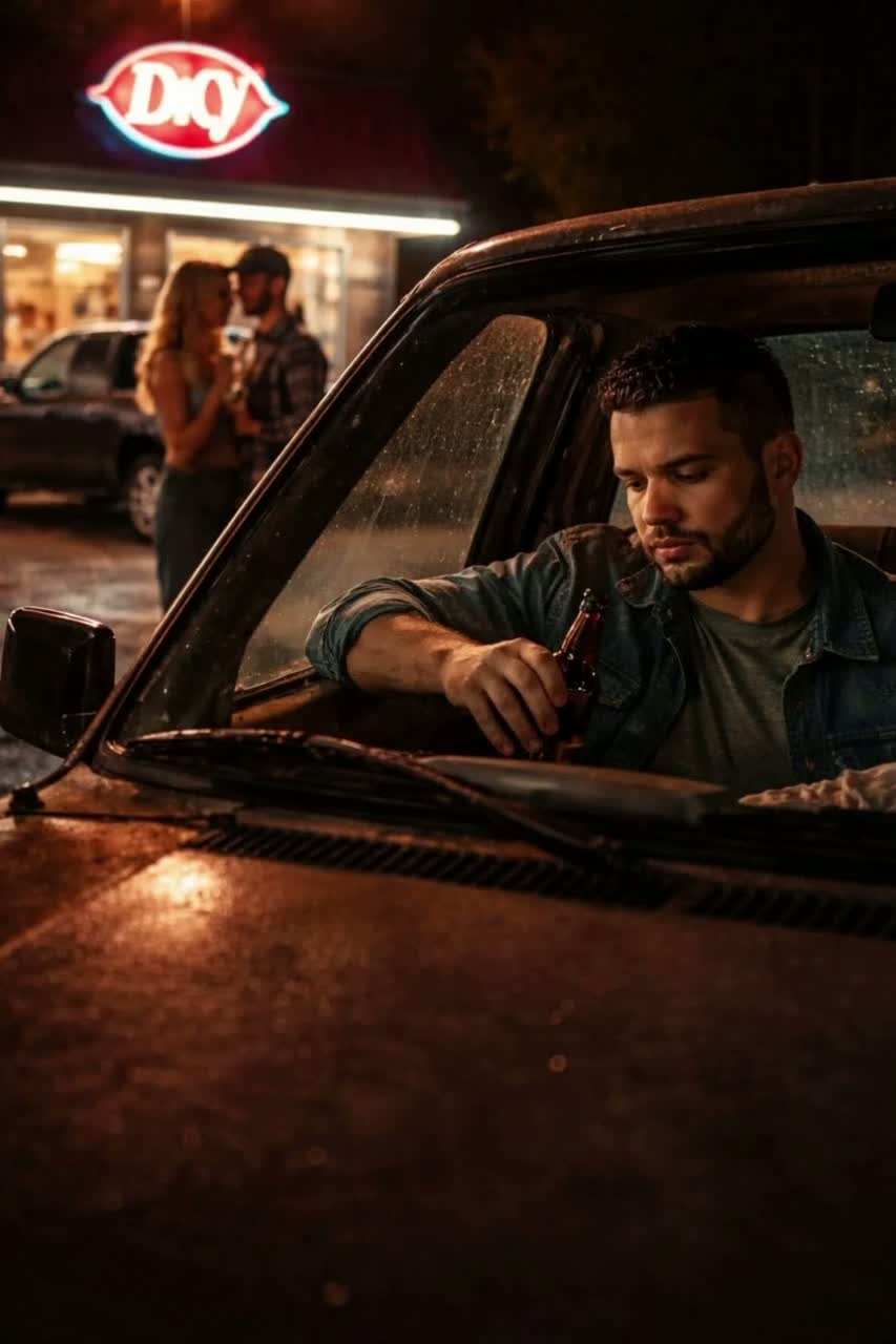 Modern sad country ballad with a stripped, intimate production, Acoustic guitar leads the song with slow, steady strumming, supported by subtle electric guitar swells, soft steel guitar lines, and minimal drums that don’t come in heavy—just enough to breathe, Warm, melancholic tone throughout, never upbeat, Male lead vocal is young, earnest, and emotionally restrained, singing like he’s holding it together rather than breaking down, Chorus should feel resigned and heavy, not dramatic—sadness carried in simplicity, Overall mood is quiet heartbreak, small-town betrayal, and lonely acceptance, built for late-night listening with space between the notes