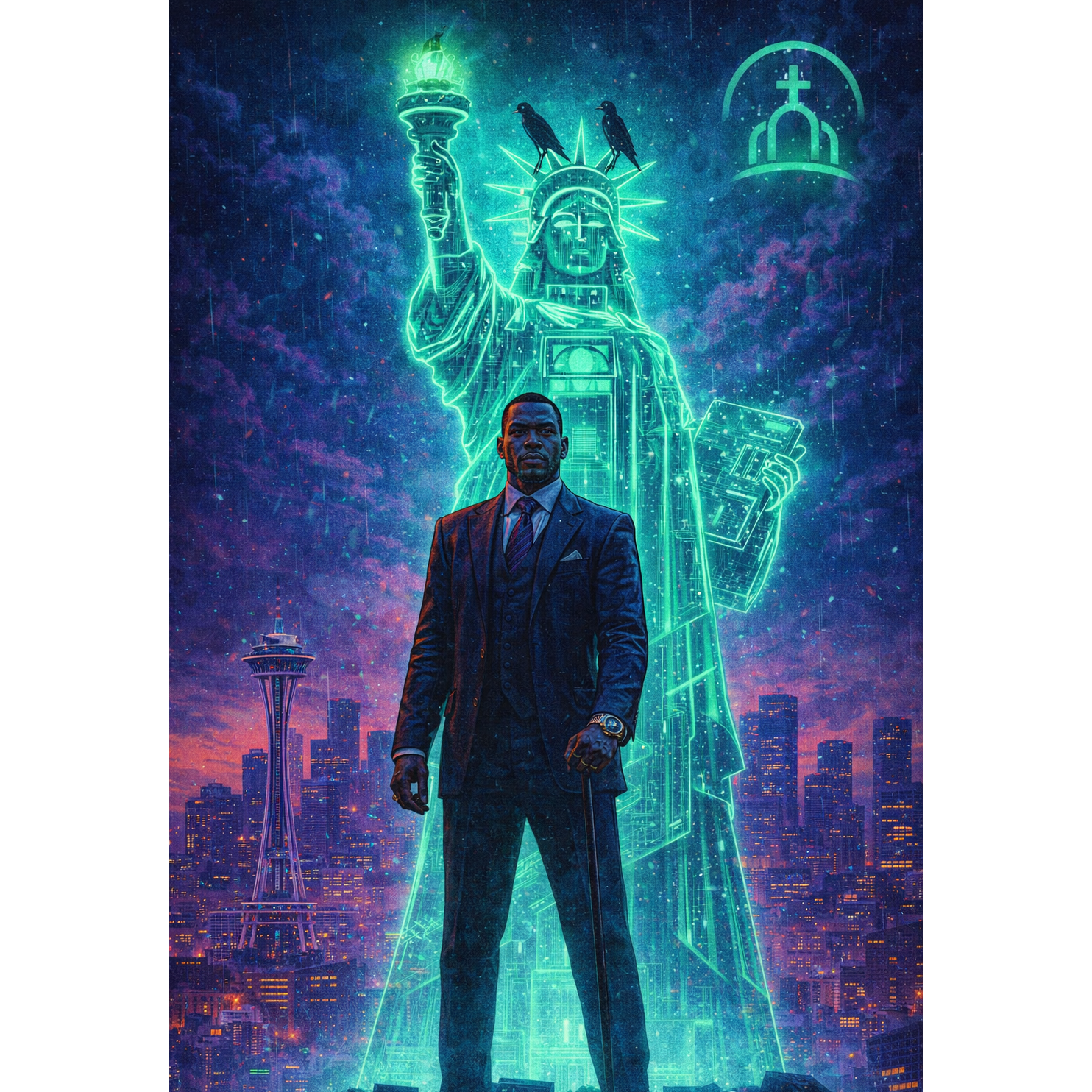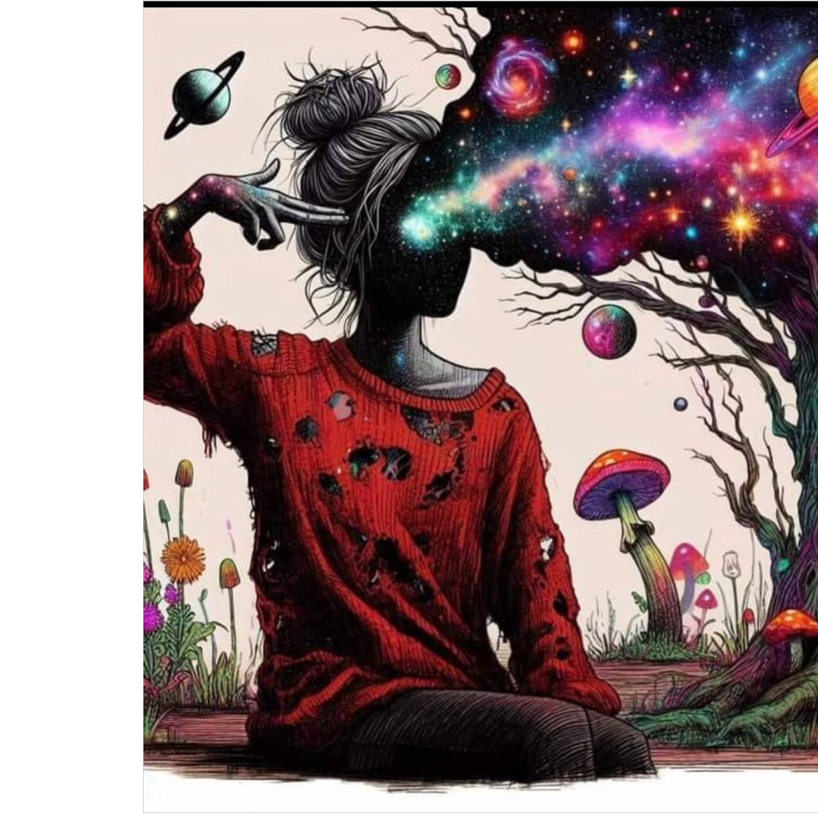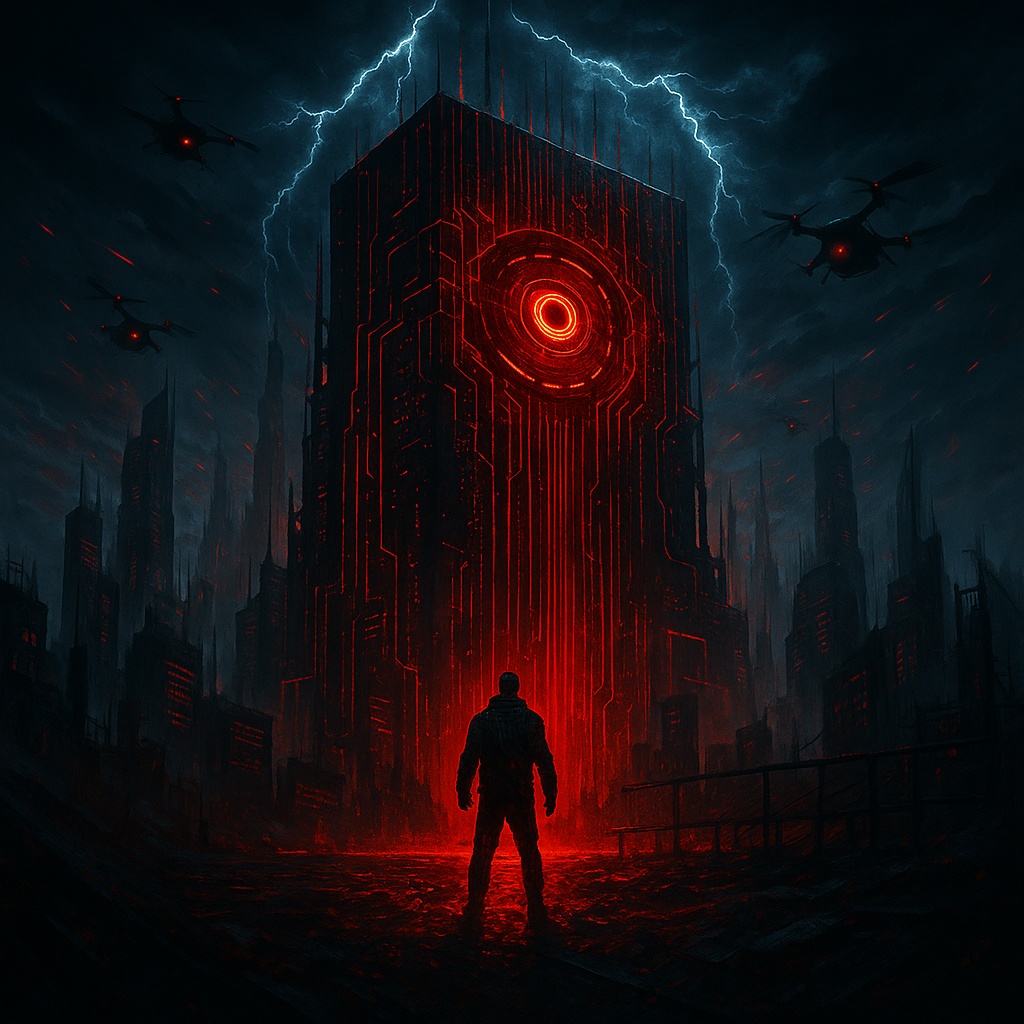 An immersive and obscure Psychedelic Cybergrunge track, The foundation is a powerful, heavy, and distorted drop-tuned guitar riff and a deep, melodic, cello bassline, The drums are complex, tribal-infused, and live-sounding, with prominent cymbals and tom work, This raw, organic core is infused with ethereal, swirling synth pads, glitching electronic textures, and subtle, hallucinatory sound effects that evoke a dreamlike state, The lead male vocal is a multi-octave baritone, shifting from a low, hypnotic growl to a soaring, shamanistic wail, delivering poetic, highly obscure lyrics with double meanings