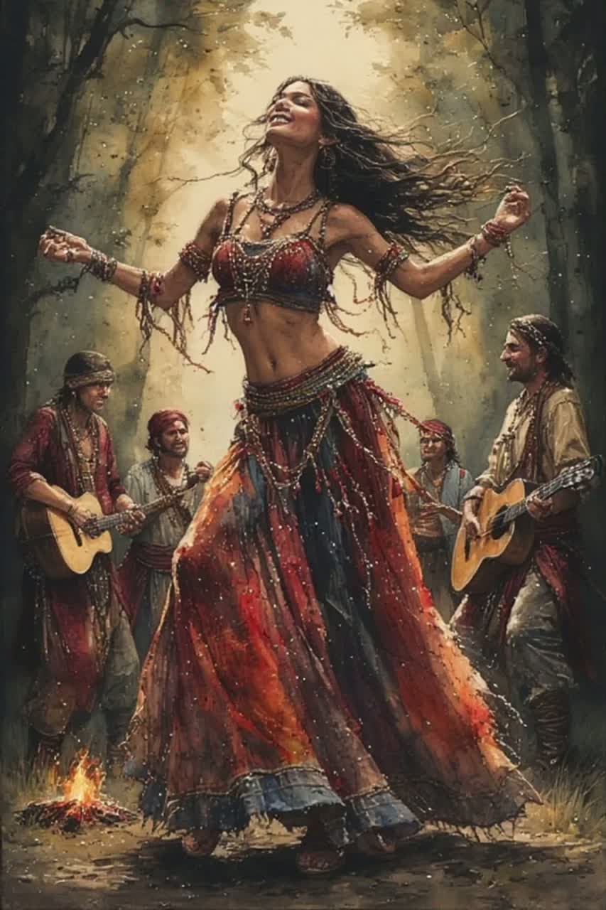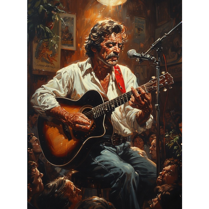 Instrumental acoustic guitar solo, showcasing virtuosic fingerstyle and vibrant strumming, Features rapid arpeggios, intricate cross-string melodies, percussive body taps, crisp staccato accents, and resonant open-string harmonics, Rhythmically intricate with dynamic tempo shifts, syncopated patterns, and pronounced foot stomps, creating a propulsive, narrative drive, Harmonically rich, exploring both minor key intensity and expressive major key passages for contrast and release, fostering a journey of tension and resolution, The mood evolves from driving energy to moments of lyrical reflection, building suspense and culminating in a powerful, clear resolution, Preformed as a warm intimate live performance with a small audience, ‑no vocals, ‑electric instruments, ‑ambient pads, ‑or choir