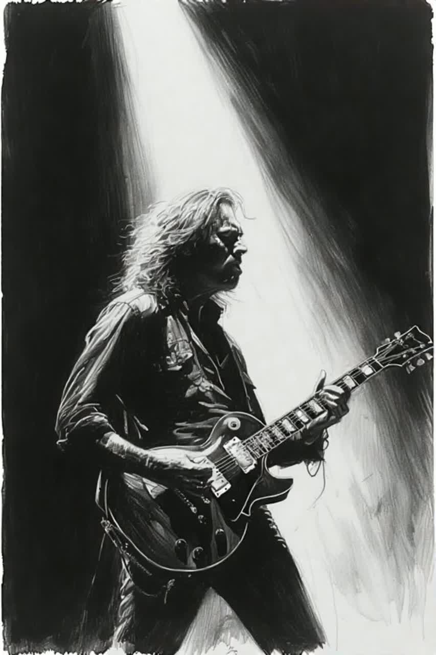 5 to 6 minute Instrumental Tribute, Electric Guitar Focused, Expressive Melodies, Talking Instrumentals, Reverb Paradise, Soaring Leads, Technical Precision, Emotional Depth, Dynamic Shifts, Guitar Harmonics, Whammy Bar Artistry, Legato Flow, Blues-Rock Infusion, Shredding Moments, Atmospheric Pads, Rhythmic Complexity, Clean Tones, Overdriven Leads, Analog Synth Textures, Long Duration, Structured Improvisation, Epic Scale, Evocative, Powerful, Inspiring, Reverent, Meditative, Ascending, Transcendent, Wordless Narrative