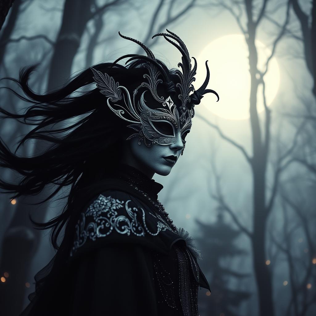 Epic sweeping Orchestral waltz feeling fantasy tune, female singer, warm and romantic tone but with a touch of danger winer cold and frost in a timeless love, tribal drums heavy flute with octave runs ascending and descending and soft choir backing, claps stomps cheers